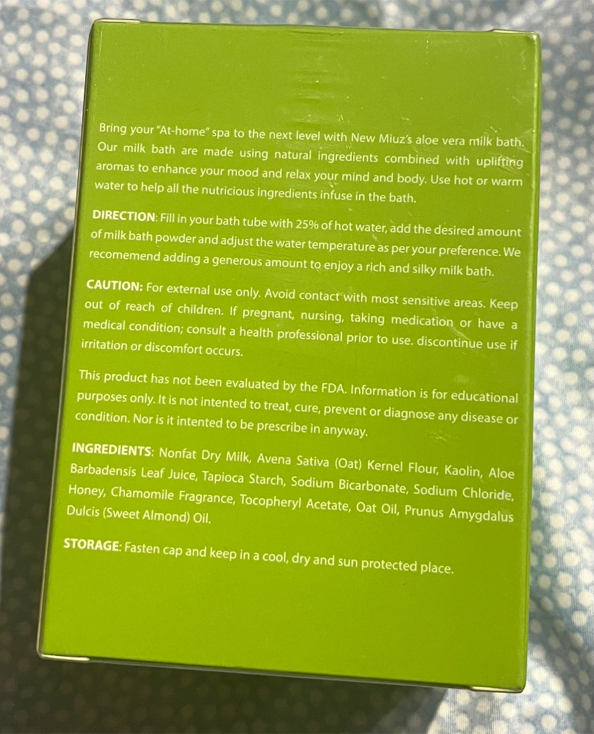 This is a brand new Newmiuz Aloe Vera Milk Bath infused with oatmeal, honey, and chamomile. It's a hydrating milk bath salt that will bring your at-home spa to the next level with natural ingredients and uplifting aromas to enhance your mood and relax your mind and body.