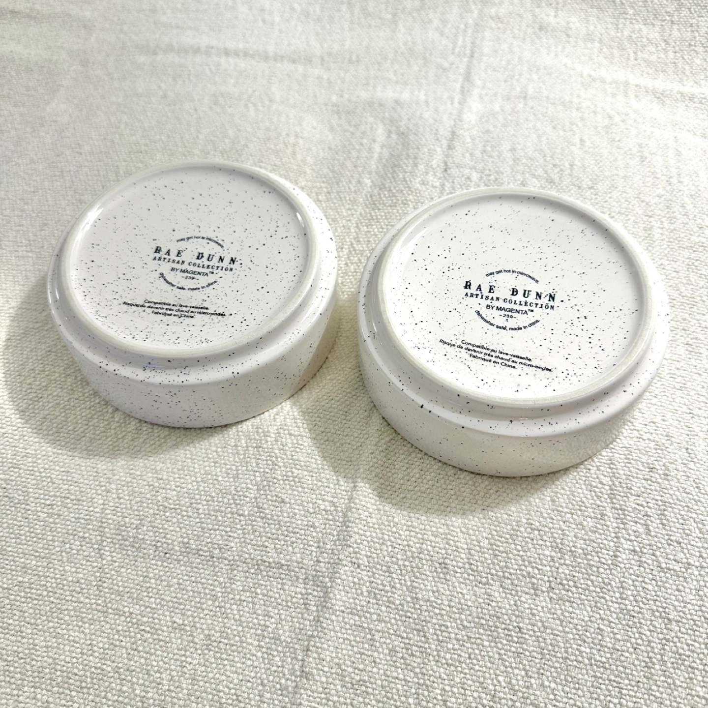Like-new Rae Dunn pet food bowls, heavy duty porcelain, microwave and dishwasher safe, no damage, 5” diameter