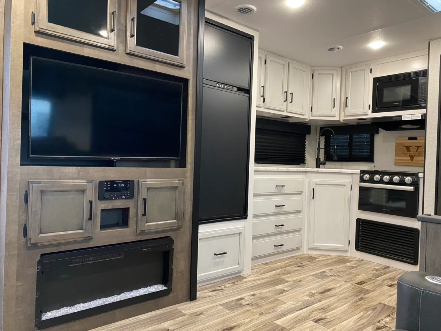 * Interior Features: Modern design with an electric fireplace, theater seating.