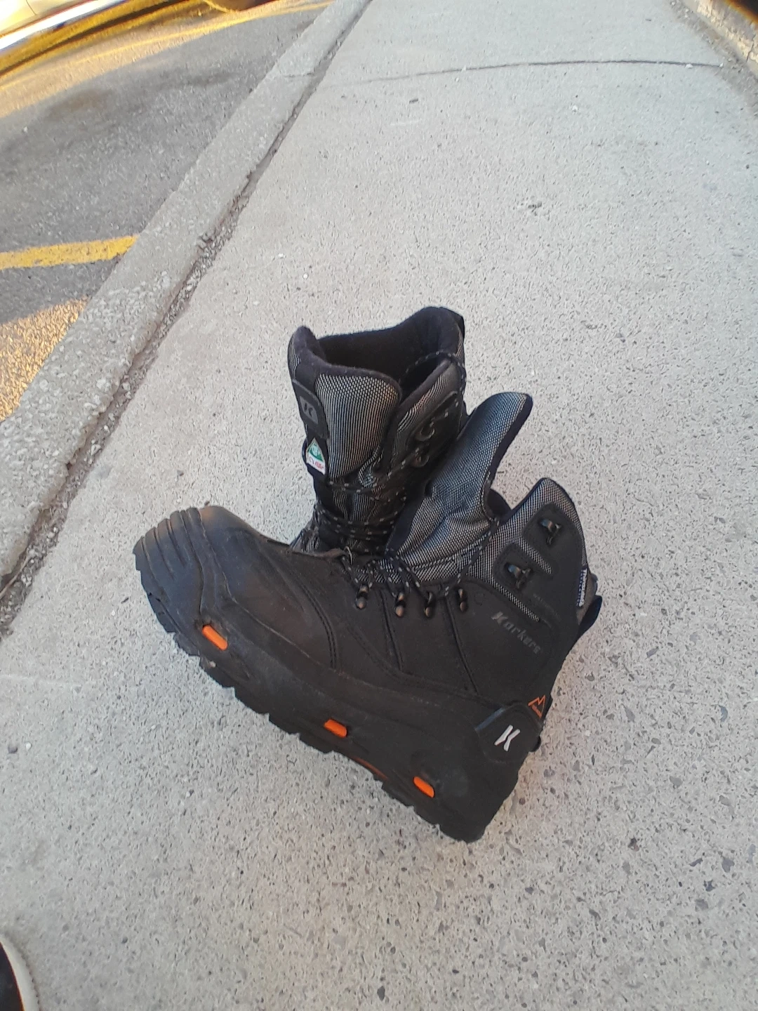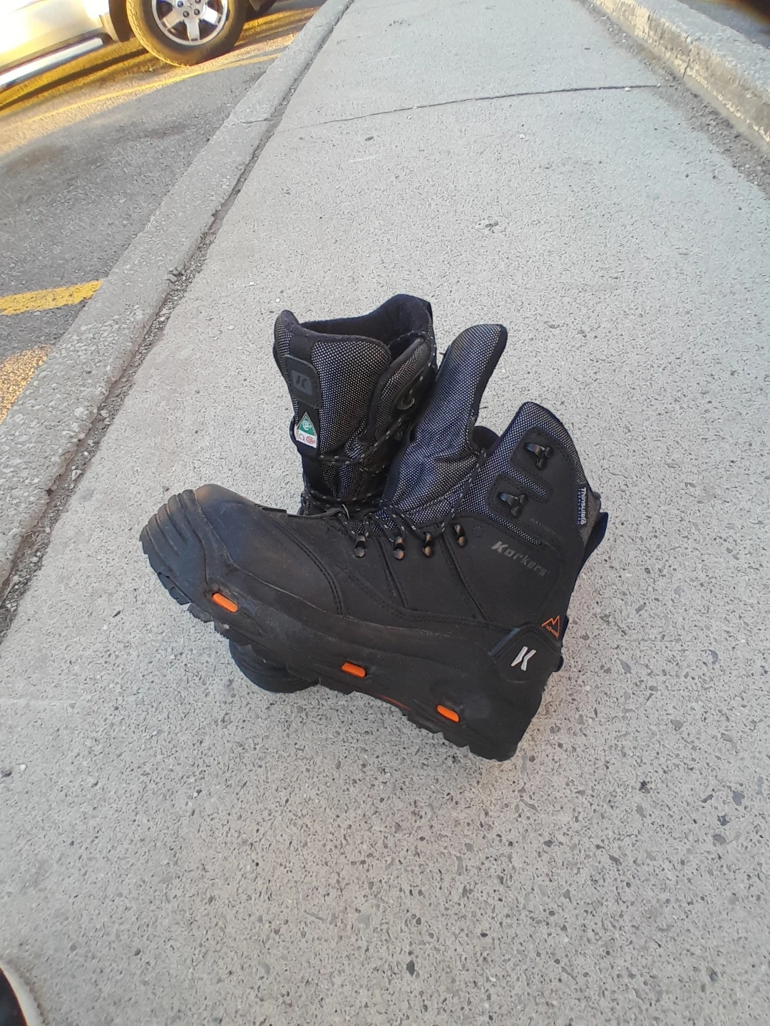 Black Safety boots by Korkers. They're built tough for demanding jobs. Features a durable sole and sturdy construction Men's size 9