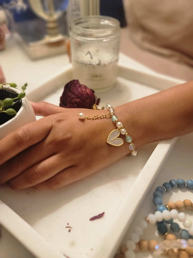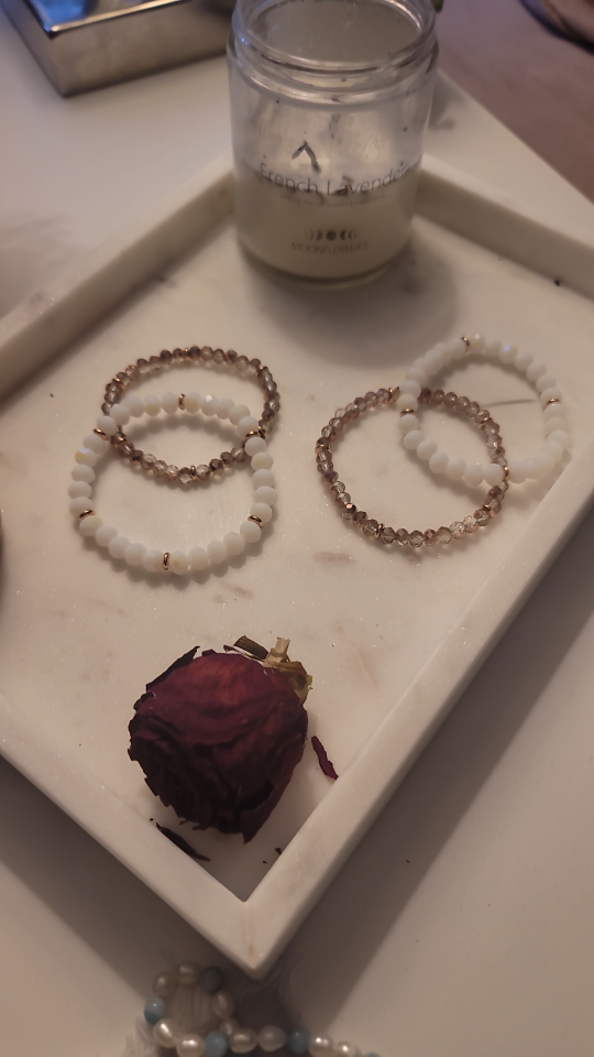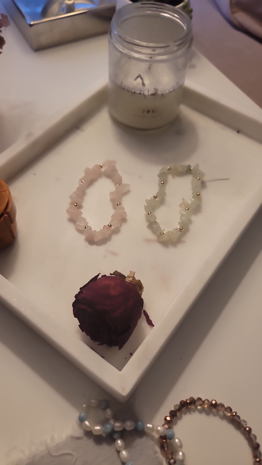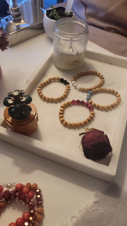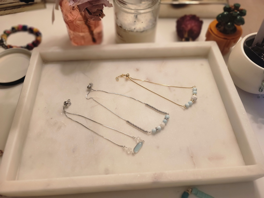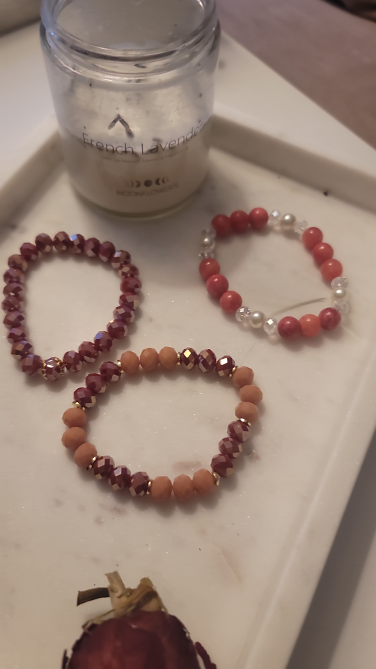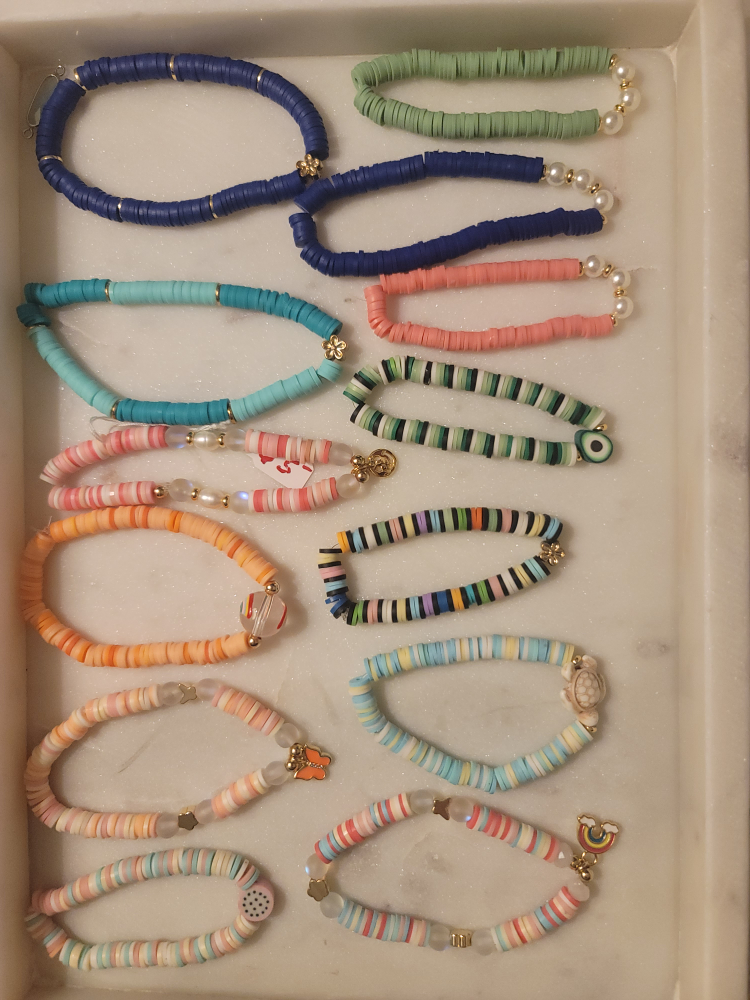 Variety of bracelets. Contact seller for description of individual bracelets. Clay beads are $5.00 Real gemstones $15.00 Macrame bracelets $15.00 Goldplated bracelets with real gemstones $20.00