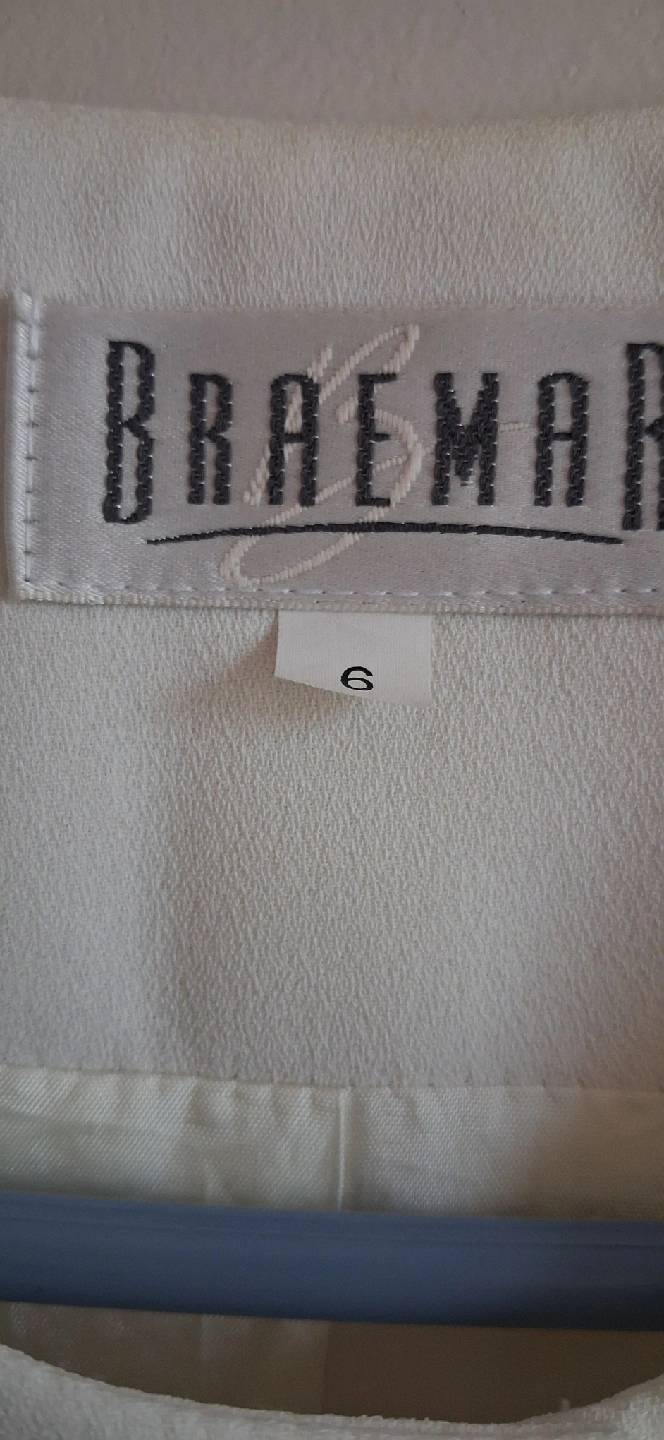 56Selling a Braemar dress and jacket set in cream colour. The dress is a size 6 and comes with a matching jacket. Perfect for a special occasion or a professional look!