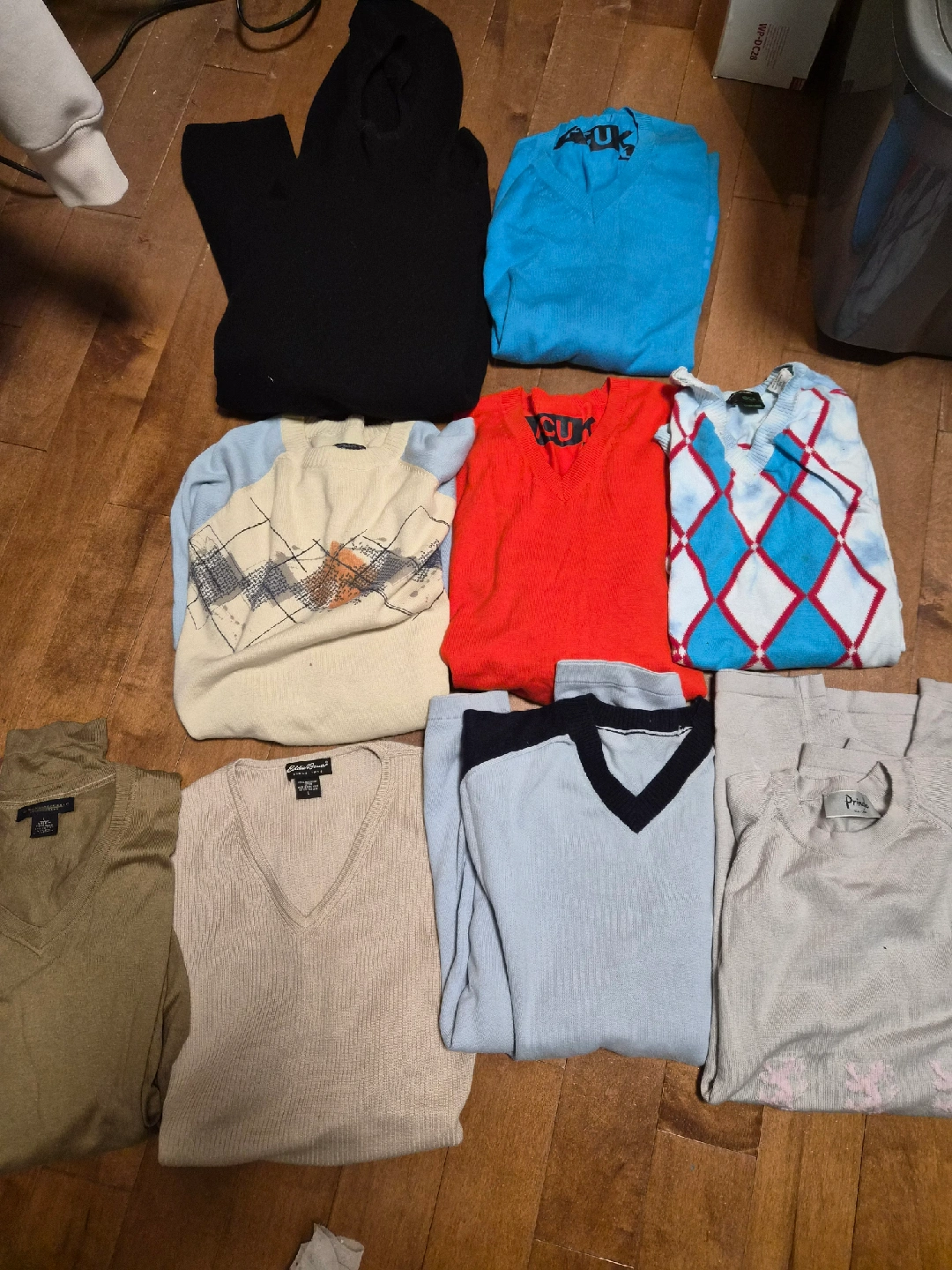 53Selling a collection of gently used sweaters! There's a variety of styles and brands included. Perfect for layering during the cooler months. Come take a look! $25 each, 2 burberry sweaters $50 each
