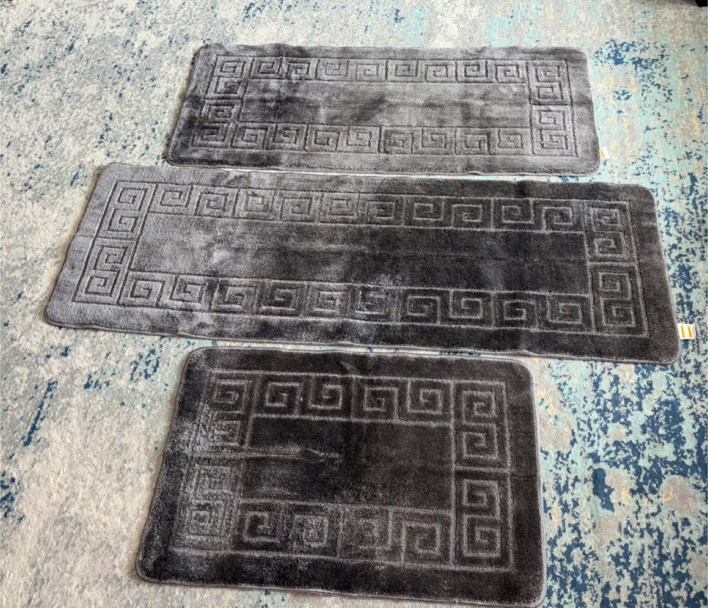 484Brand new 3 Piece Non Slip Bath Mats, Shaggy Microfiber, Absorbent, Machine Washable, Grey, 20"x32"+20"x48"+20"x60" No holds no delivery Price is firm