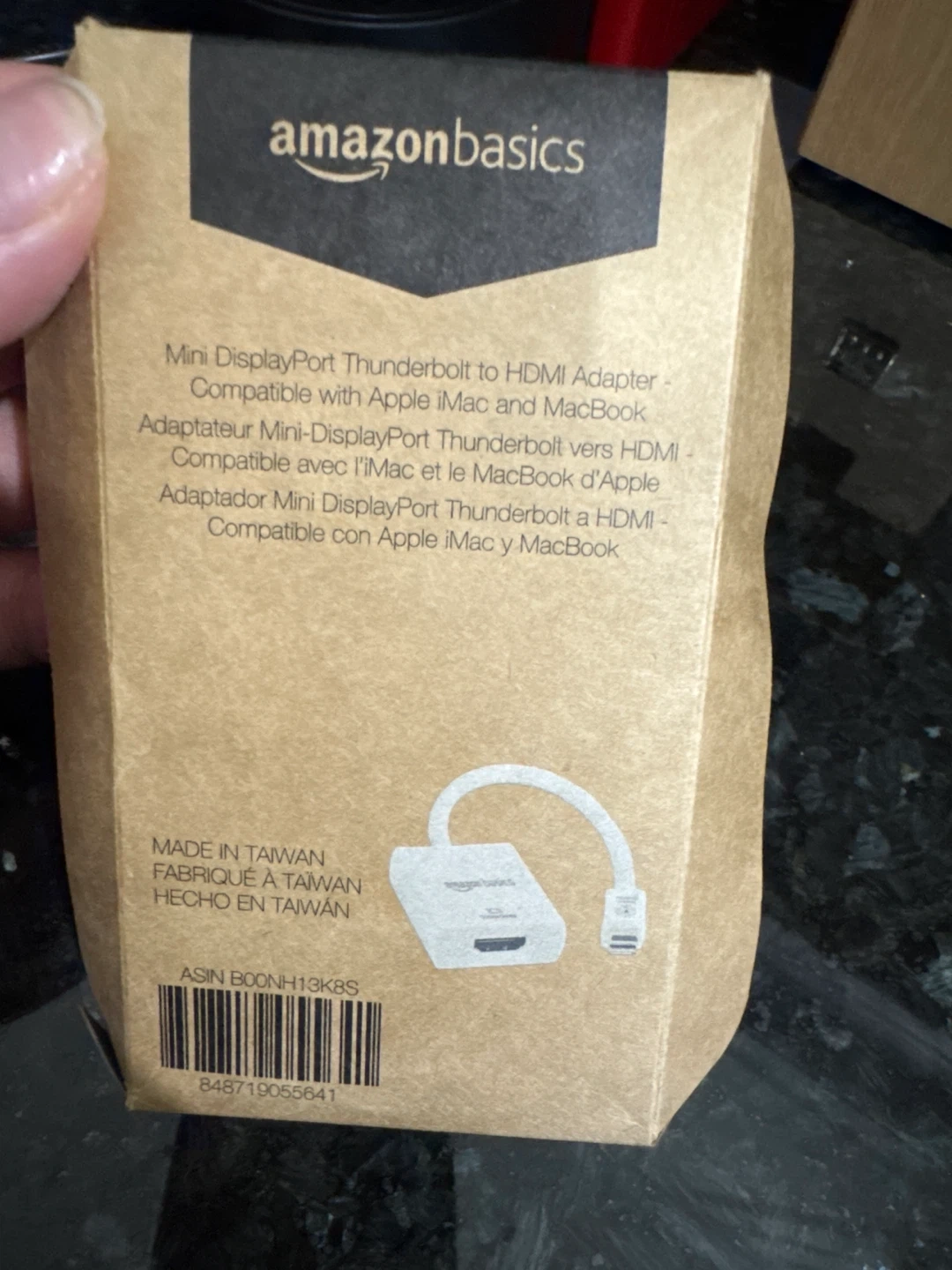 100Selling an Brand New AmazonBasics Mini DisplayPort Thunderbolt to HDMI Adapter. It's compatible with Apple iMac and MacBook. Comes with the original box!