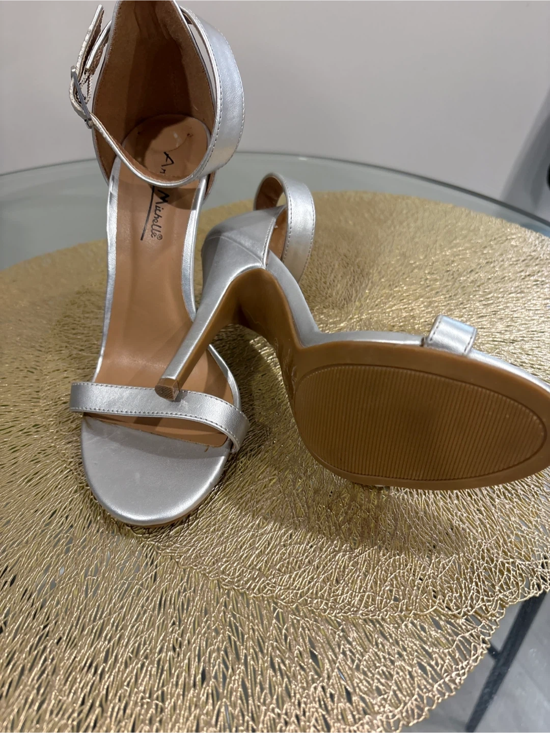 Selling a pair of Anne Michelle silver heels in size 6, They are in New condition and the heel height is about 4 inches. Perfect for a night out or special occasion!