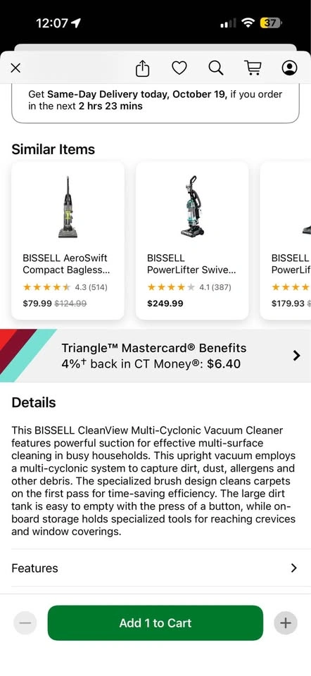 This BISSELL CleanView Multi-Cyclonic Vacuum Cleaner features powerful suction for effective multi-surface cleaning in busy households. This upright vacuum employs a multi-cyclonic system to capture dirt, dust, allergens and other debris. The specialized brush design cleans carpets on the first pass for time-saving efficiency. The large dirt tank is easy to empty with the press of a button, while onboard storage holds specialized tools for reaching crevices and window coverings.