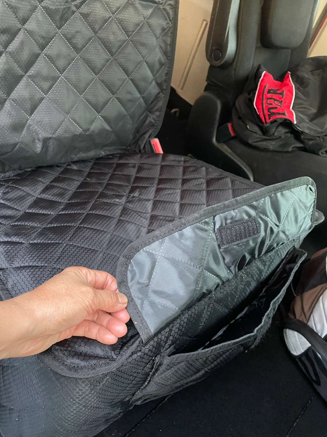 Selling a brand new black car seat cover. It also has a pocket for storage. Perfect for keeping your car seats clean and protected from your pet dog.
