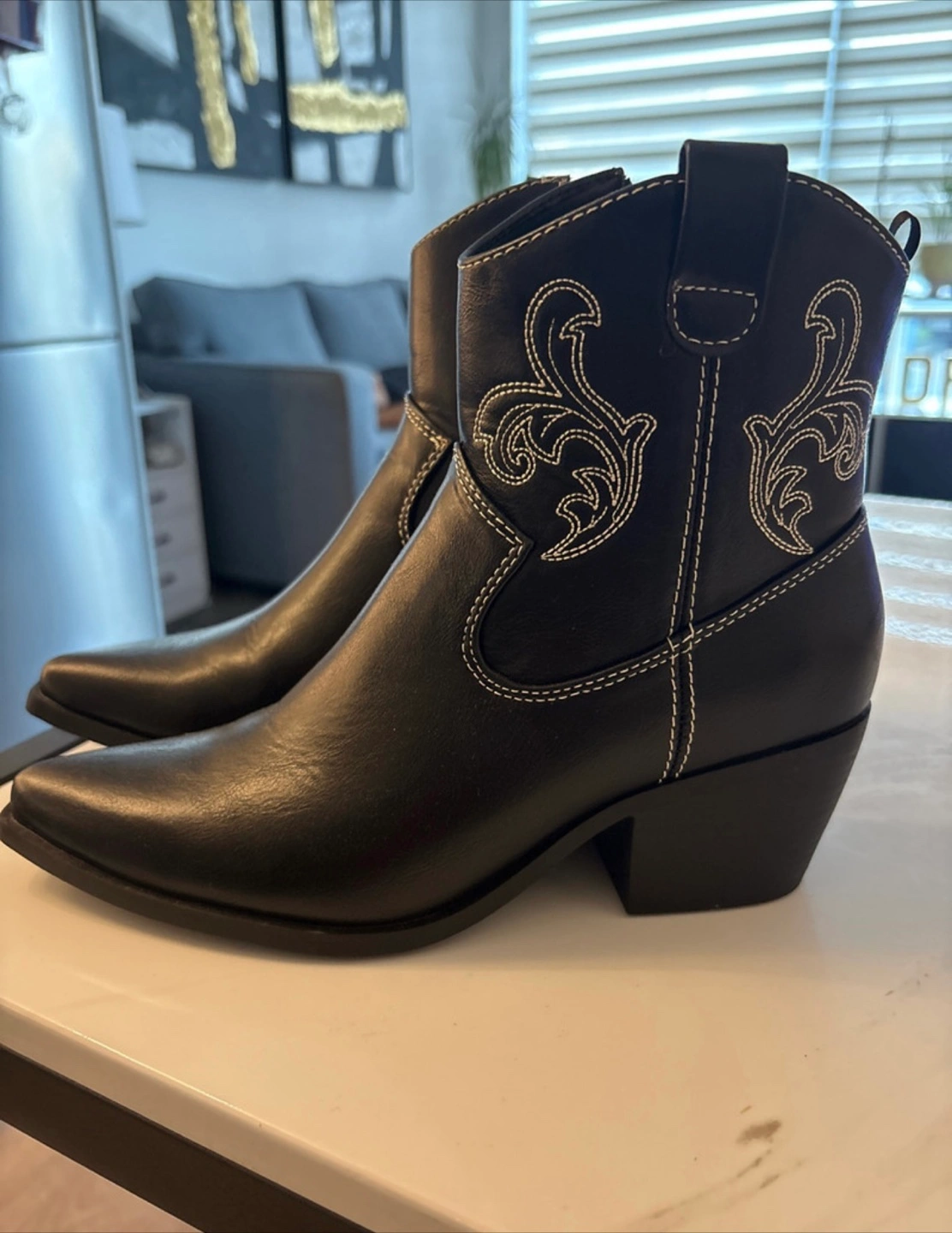 Brand new - stylish design with white stitching and a comfortable heel. Perfect for adding a touch of western flair to your wardrobe