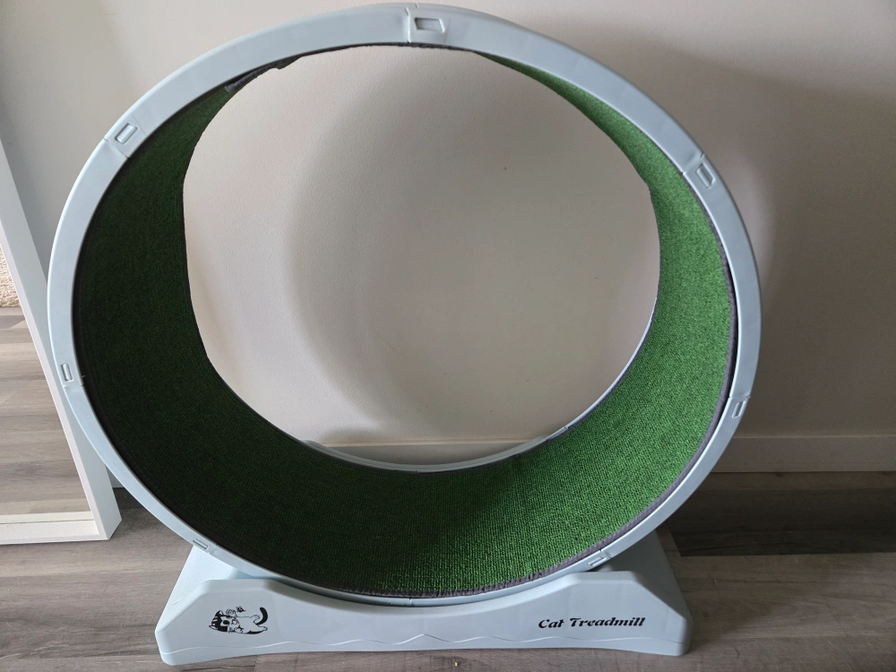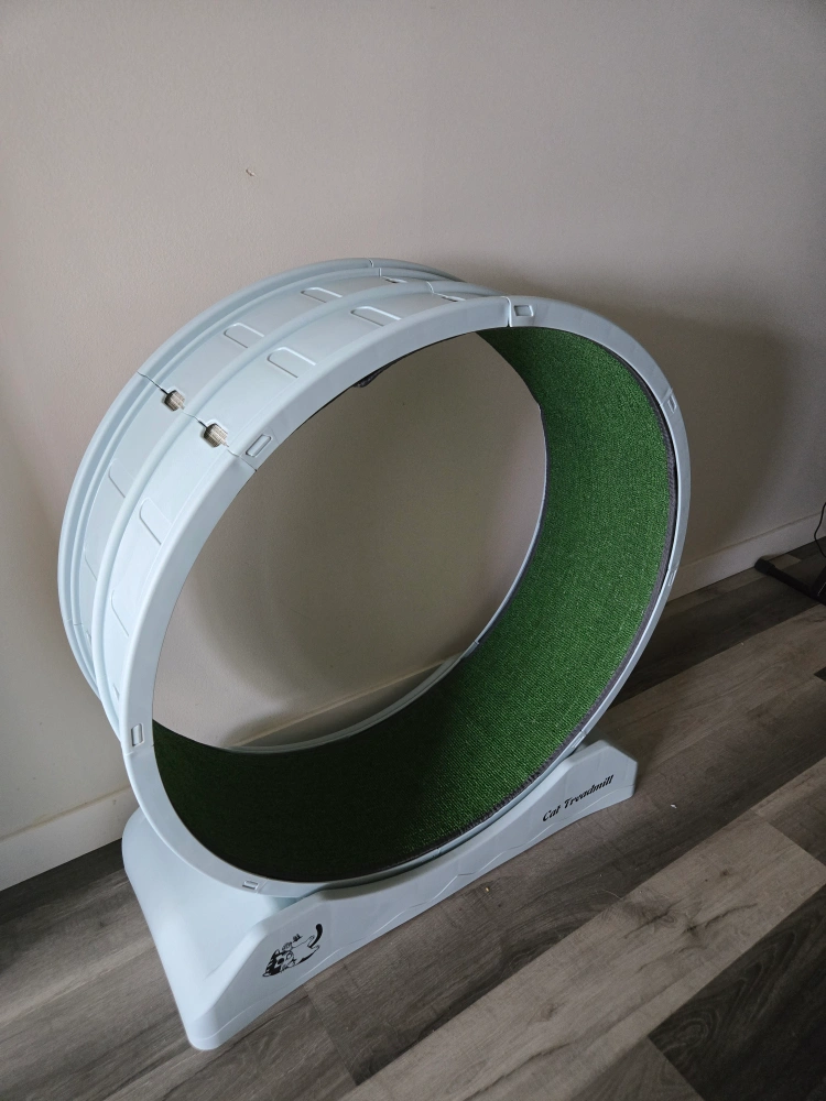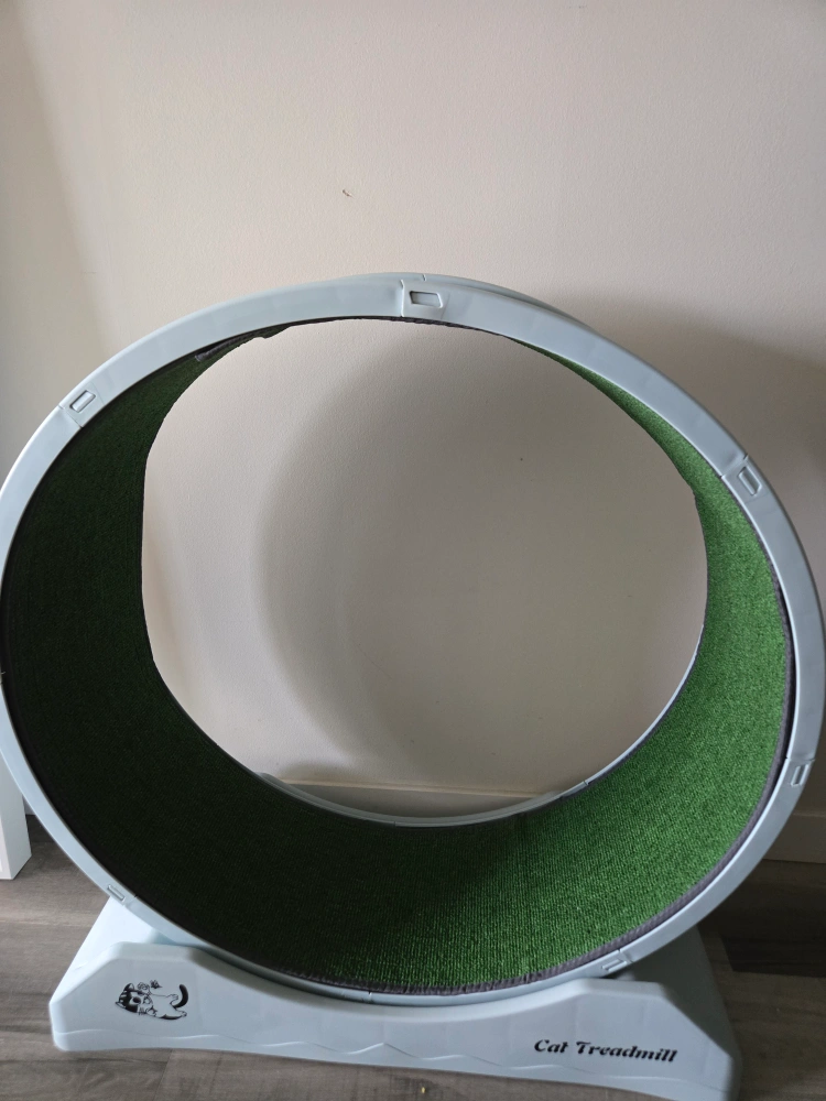 Looking to sell this cat treadmill exercise wheel. I bought it for my cat, but she unfortunately died before she got to use it. It is brand new but already assembled. Perfect for keeping your feline friend active and entertained indoors!