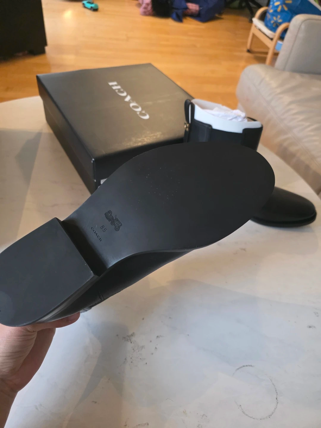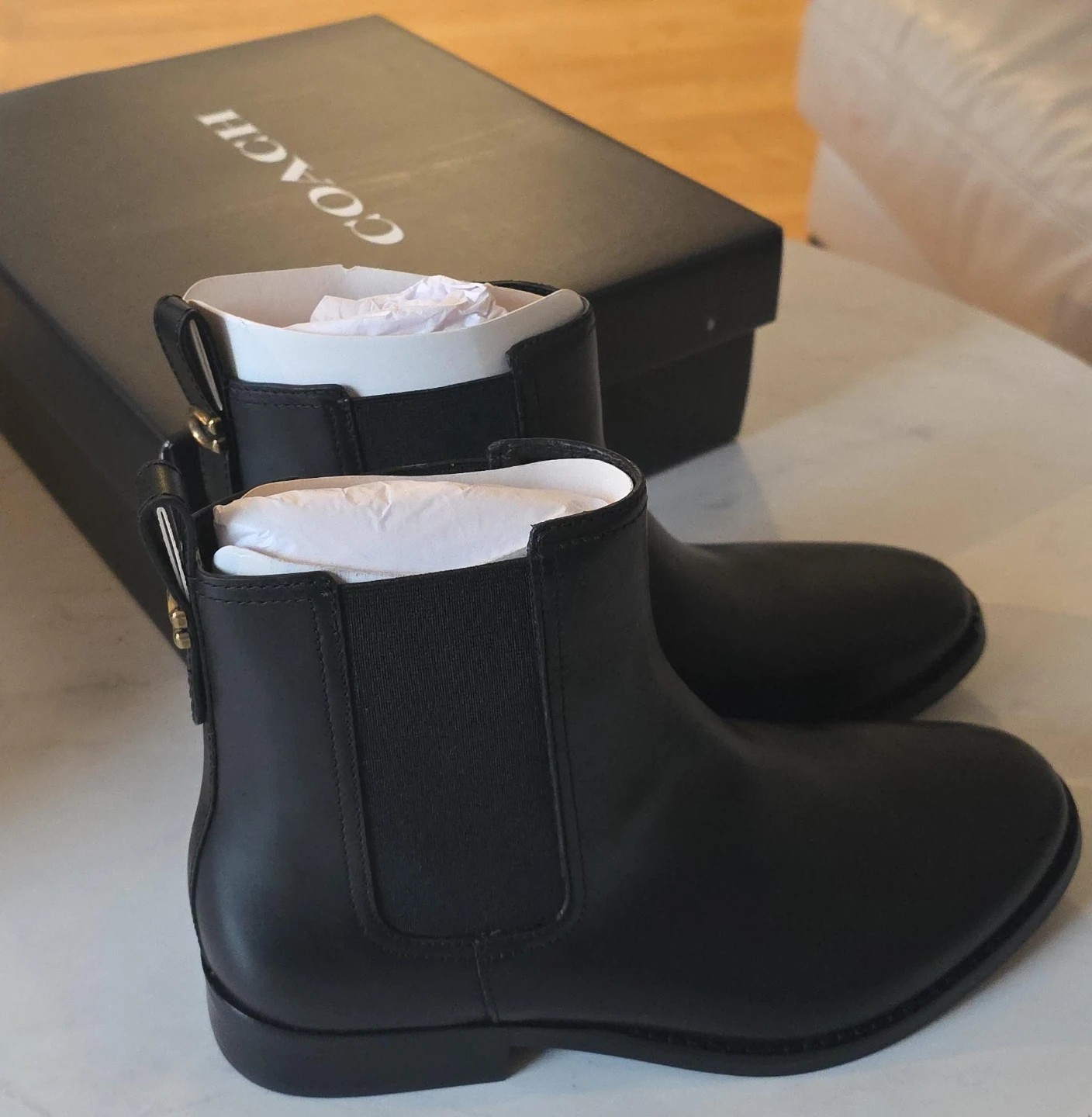 34Perfect gift for Xmas! BNIB - Selling a pair of Coach Maeve Leather Booties in black. They are brand new and come with the original box. Size is 8.5 US