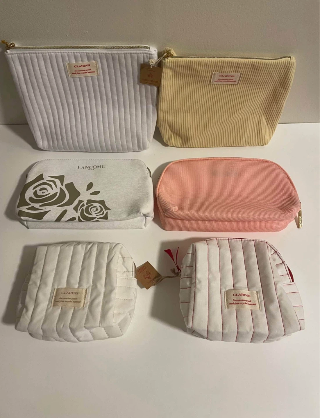 65I have several brand new cosmetic cases available for $5 each! They come in various colours and styles. There are Clarins and Lancome cases available. Great for organizing your makeup or toiletries!