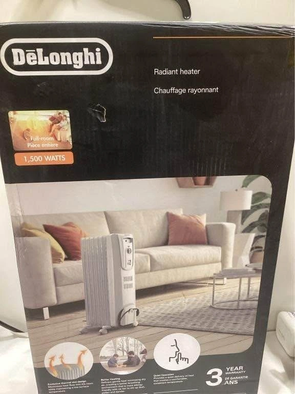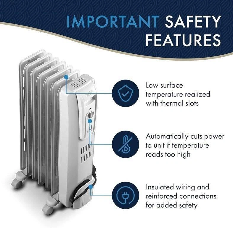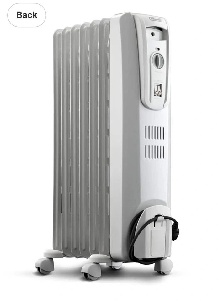 De'Longhi Oil-Filled Radiator Space Heater, Full Room Quiet 1500W, Adjustable Thermostat 3 Heat Settings, Energy Saving, Safety Features, Light Gray.