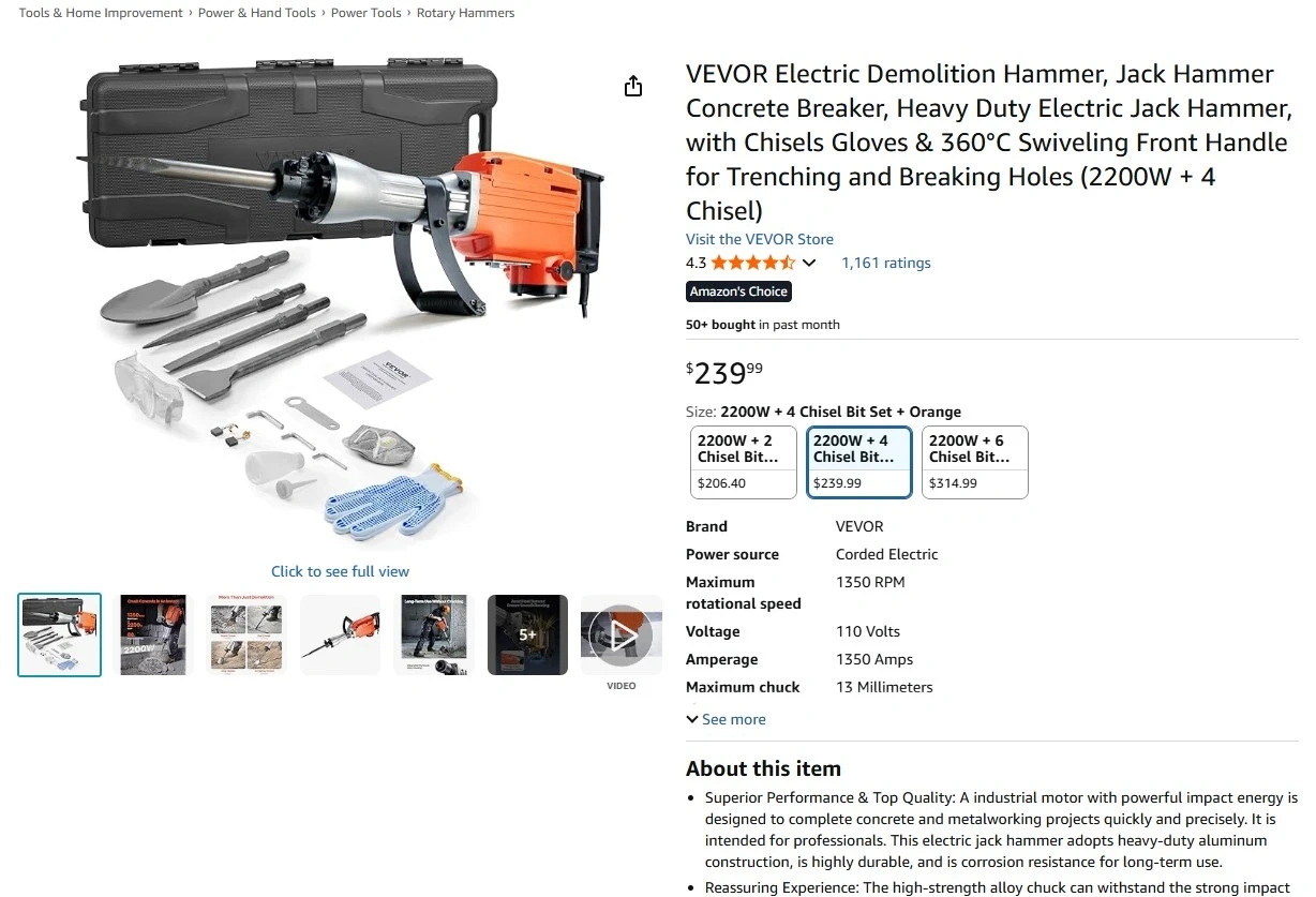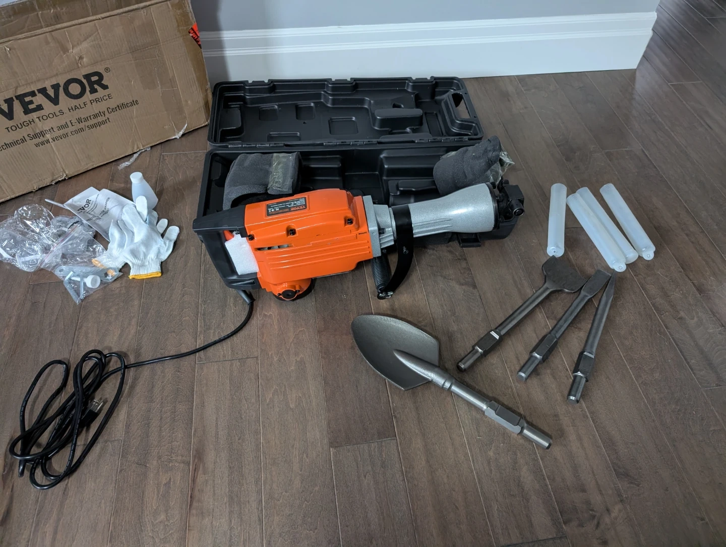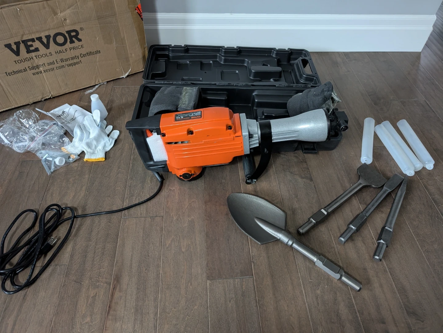 230Brand new Vevor demolition jackhammer for sale. 2200W electric heavy duty jack hammer, 1350 BPM, concrete breaker, 4 piece chisel bits, case, $200 FIRM.
