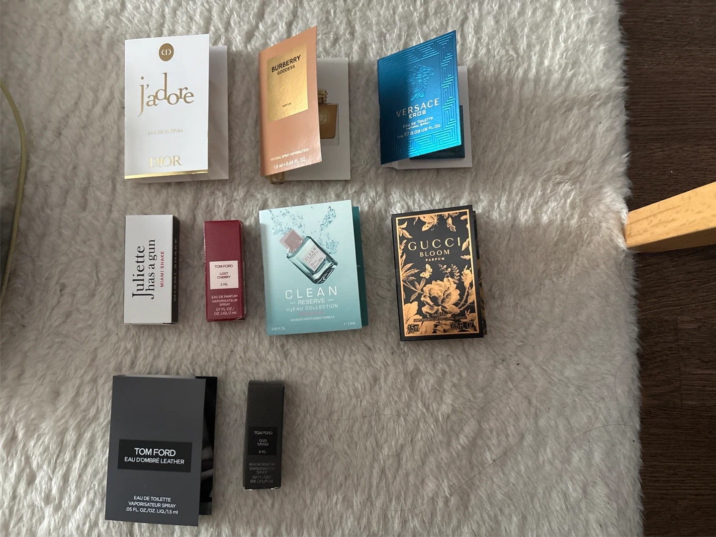 132Selling a collection of perfume sample vials from various brands! Includes scents from Dior (J'adore), Burberry (Goddess), Versace Eros, Gucci Bloom, Tom Ford (Lost Cherry, Ombre Leather), Juliette has a gun (Miami Shake), and Clean Reserve. Great way to try out new fragrances!