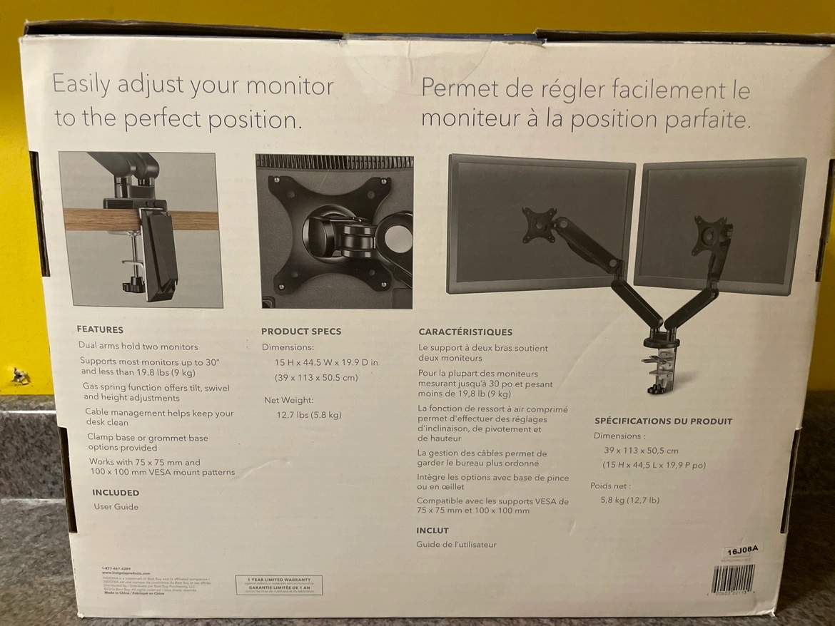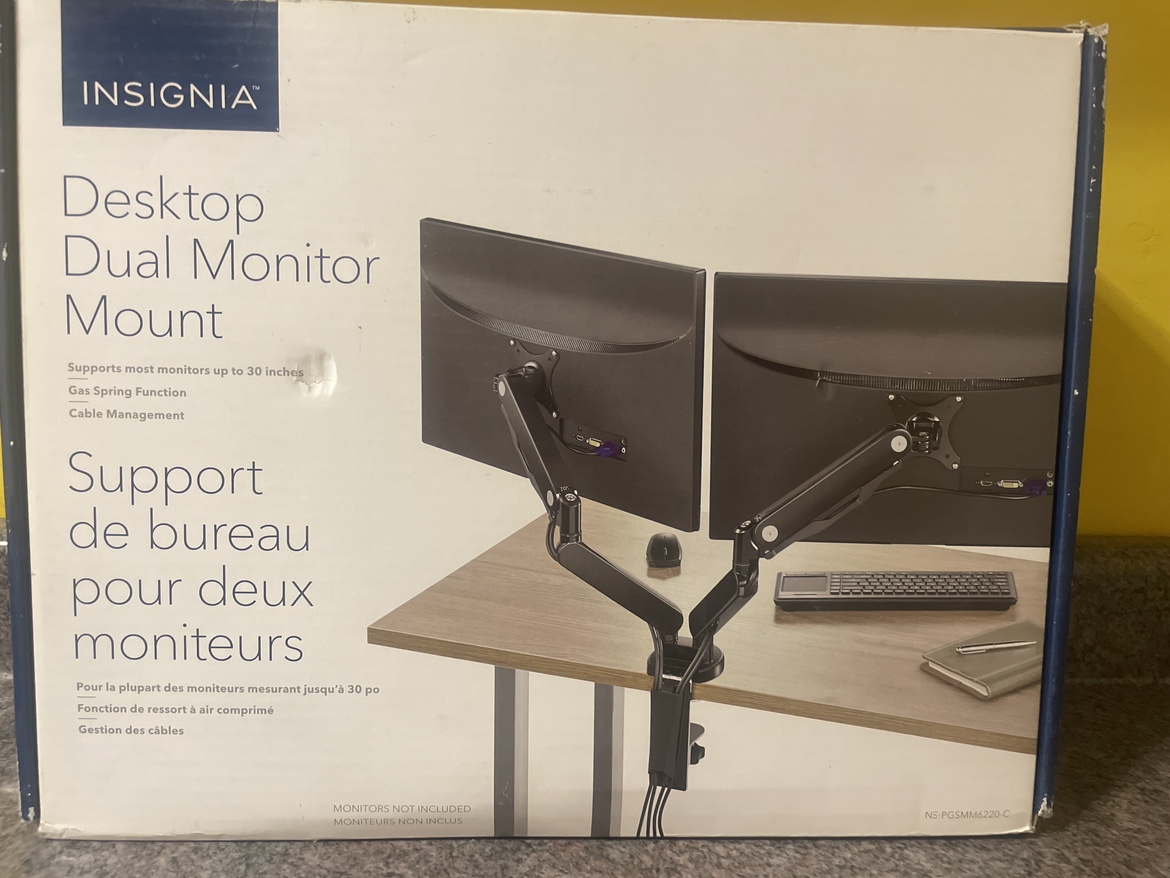 Bought from Best Buy ended up going with a different set up. Dual monitors can be mounted with this saving you desk space.