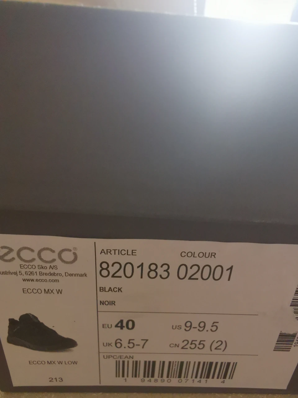 27Brand new in box Selling a pair of ECCO MX W Low shoes in black. These are in excellent condition and come with the original box. The size is US 9-9.5. These shoes are perfect for everyday wear!