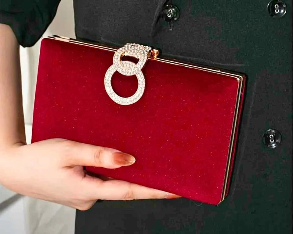 Brand new elegant crimson red evening bag for women