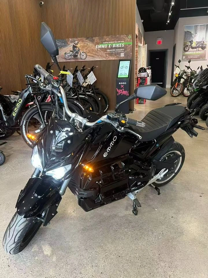 15EMMO Kamen – Motorcycle-Style Electric Bike Battery: 84V/20AH SLA (45 km - 55 km) Original Price: $3399>>>$900 OFF>>>$2499 Experience raw power, modern design, and everyday practicality with the EMMO Kamen — a full-size, motorcycle-inspired electric eBike built for riders who crave bold performance without the gas or noise. Designed to dominate city streets and longer commutes, the Kamen delivers the perfect mix of power, style, and comfort. 🔋 Key Highlights ✅Powerful QS Super Torque Motor – Delivers incredible acceleration and smooth power for an authentic motorcycle feel. ✅84V Lithium Battery System – High-capacity, removable battery options offering up to 110 km range per charge (depending on riding style and load). ✅Motorcycle-Inspired Design – Full-size frame, LED headlight, sleek fairings, and wide street tires for a bold and confident look. ✅Smooth and Stable Ride – Hydraulic front and rear disc brakes, robust suspension, and 14-inch wheels for precise control and comfort. ✅Smart Security System – Equipped with remote alarm, keyless start, and steering lock for peace of mind wherever you go. ✅ Zero Emission, Low Maintenance – Eco-friendly and cost-efficient alternative to gas motorcycles — no fuel, no oil changes, no noise. ✅Storage & Practicality – Under-seat compartment and passenger-ready seat, perfect for daily commuting or weekend cruising. ✅Optional Storage: Tailbox and Saddle Box for your own choice. 🔥(No license/insurance required in most areas). 🔥 Ride the power. Feel the freedom. Go electric with EMMO Kamen. More information: https://emmo.ca/collections/discontinued-models-1/products/emmo-kamen?variant=42329590857985 📩 Message us if interested — first come, first serve! 📍Emmo Ebikes Vaughan: 1750 Steeles Ave W Unit 15, Concord, ON L4K 2L7 📞+1️⃣9️⃣0️⃣5️⃣-7️⃣6️⃣0️⃣-7️⃣7️⃣6️⃣0️⃣