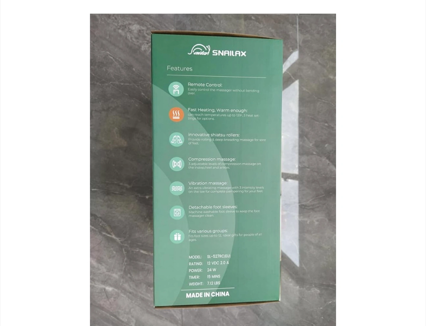 Looking to relax after a long day? I'm selling a Snailax foot massager! It comes with the box and all the original components, including the charger and instructions. It features fast heating in 30 seconds and two heating settings. Dimensions are approximately 11.8 in x 14.1 in x 5.9 in