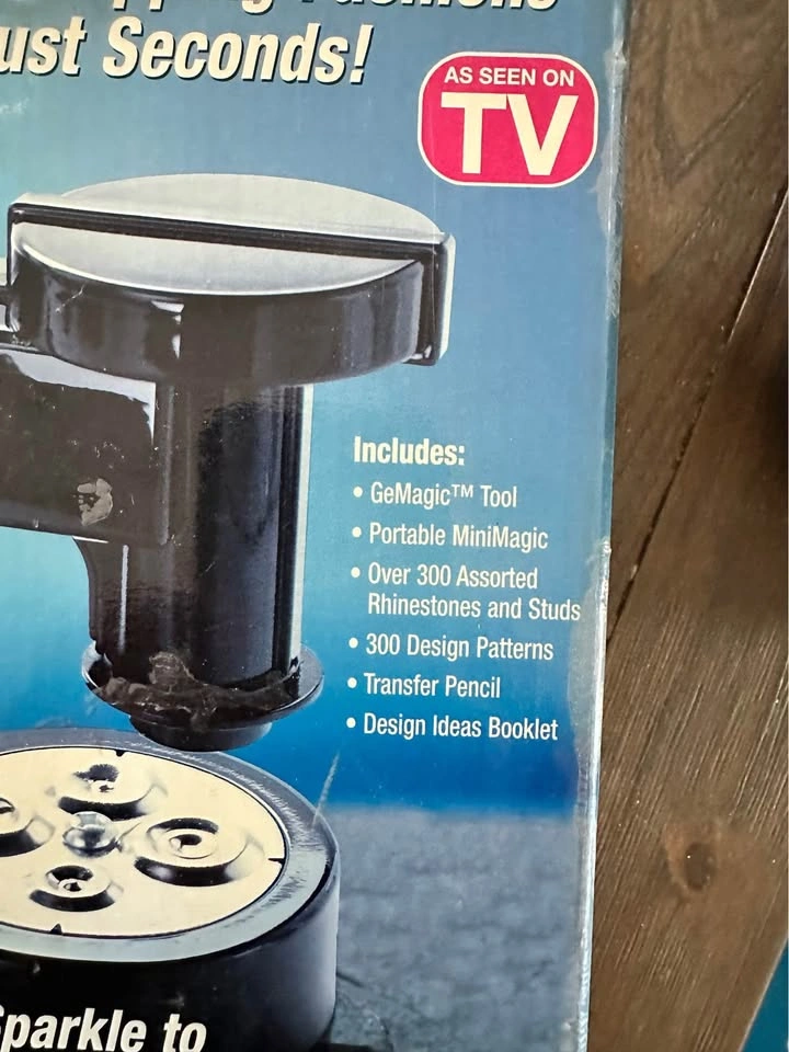 Add sparkle to almost anything! ✨ Brand new, still sealed GeMagic by Cathy Mitchell kit. Includes tool, BONUS MiniMagic, over 300 rhinestones & studs, transfer pencil, design patterns, and idea booklet. 💎 Perfect for customizing clothes, bags, hats & more! 🎁 Great for crafters, DIYers, or as a gift. Pickup in Tsawwassen. Asking $40 OBO.