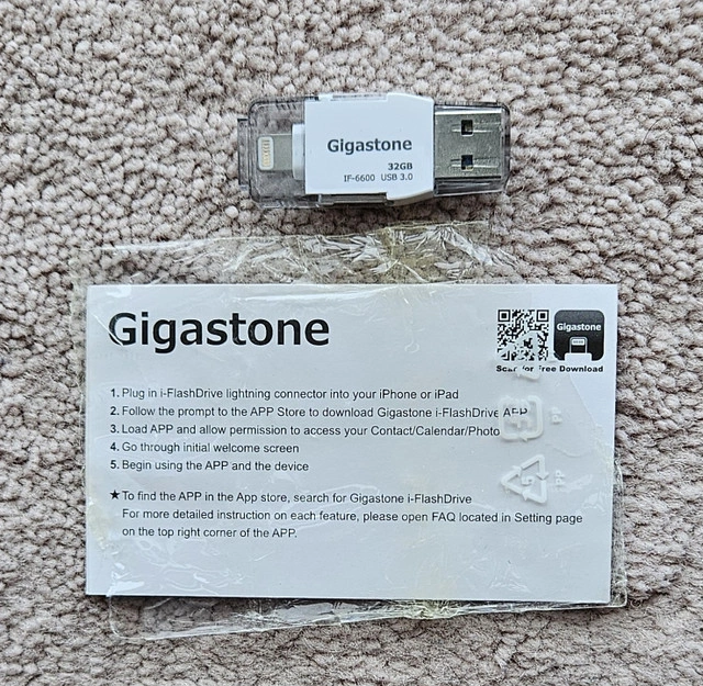 15BRAND NEW Gigastone 32GB IF-6600 i-Flash Drive NEEDS TO GO ASAP . Pickup - Scarborough M1P 5C7, Canada . FULLY TESTED, SO BUY HASSLE FREE In EXCELLENT WORKING CONDITION with NO ISSUES . ✅ Compatible with most iPhone and IPAD ✅ Ideal for storing Data / Movies / Videos / Music / Photos etc. ✅ As you can see from the attached Photos, I have connected to the external Drive on my iPad. . . PRICE IS NEGOTIABLE . . CASH ONLY....... NO SHIPPING / NO E-TRANSFER . . Pickup - Scarborough (Ellesmere Rd and Mondeo Drive) ON M1P 5C7, Canada . Please call or text 416-291-7644