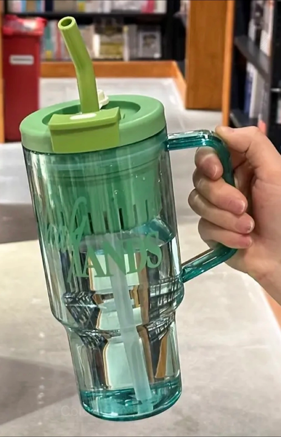 Selling a green tumbler with a straw and handle! Great for staying hydrated on the go!!!