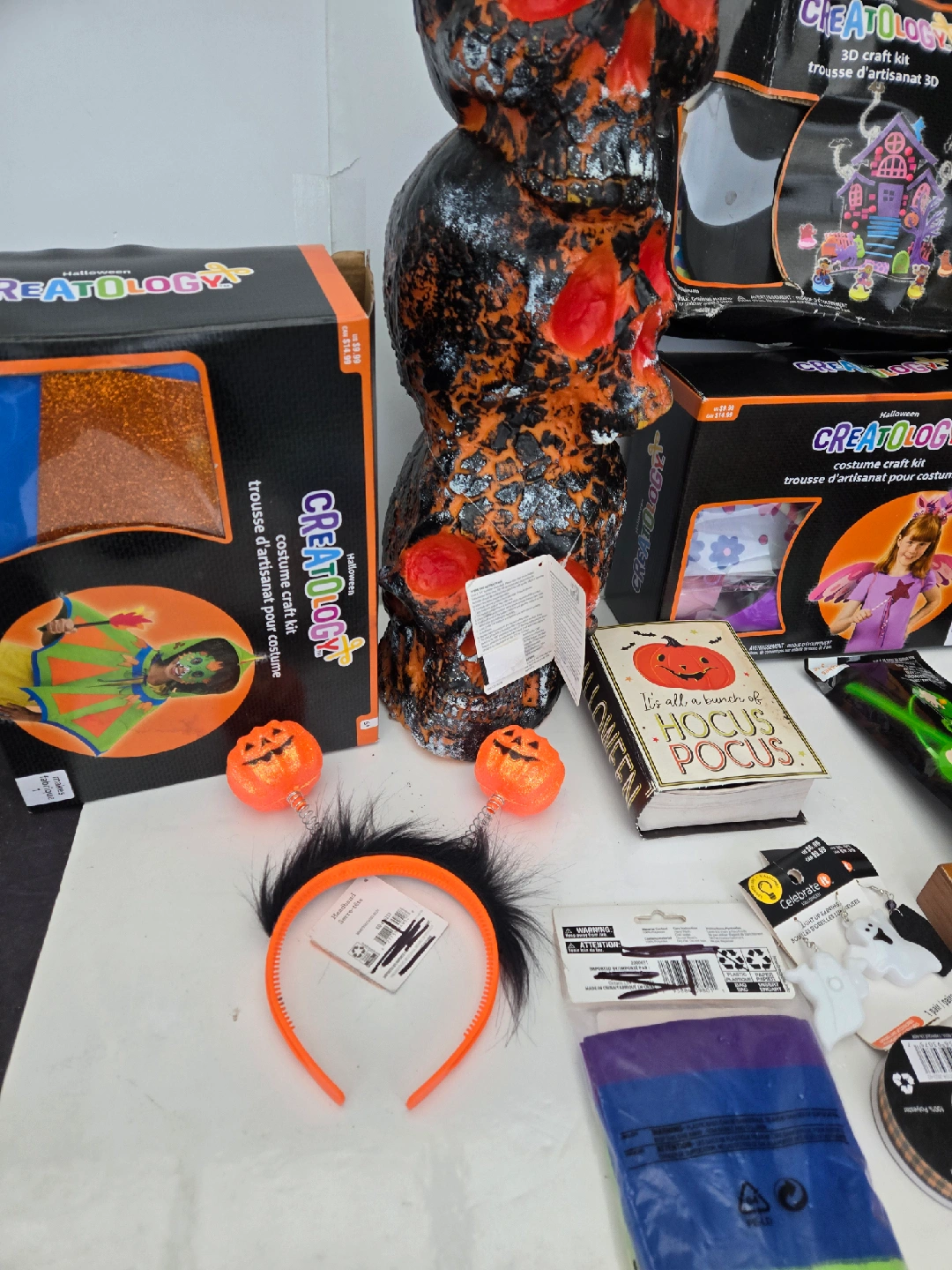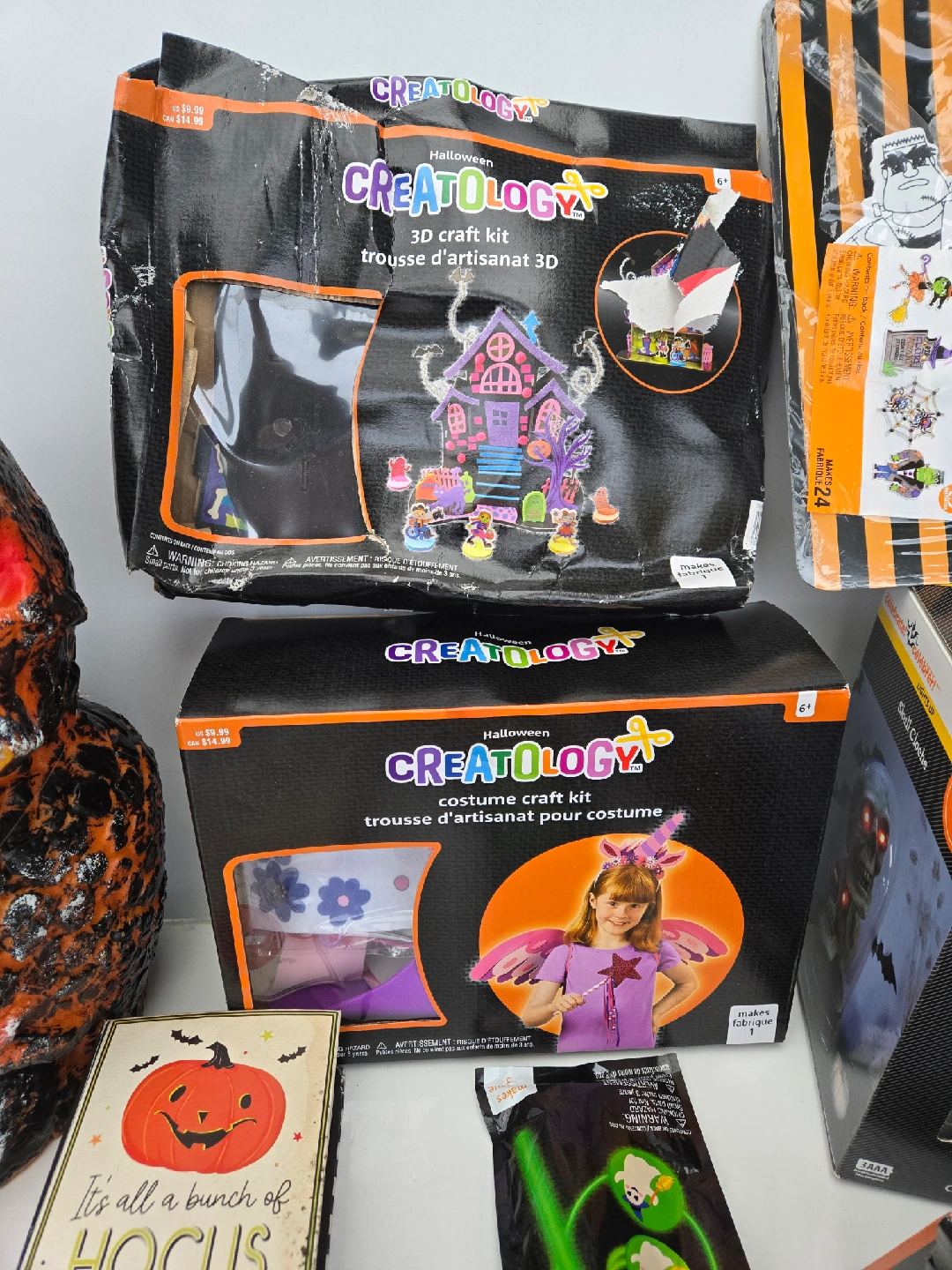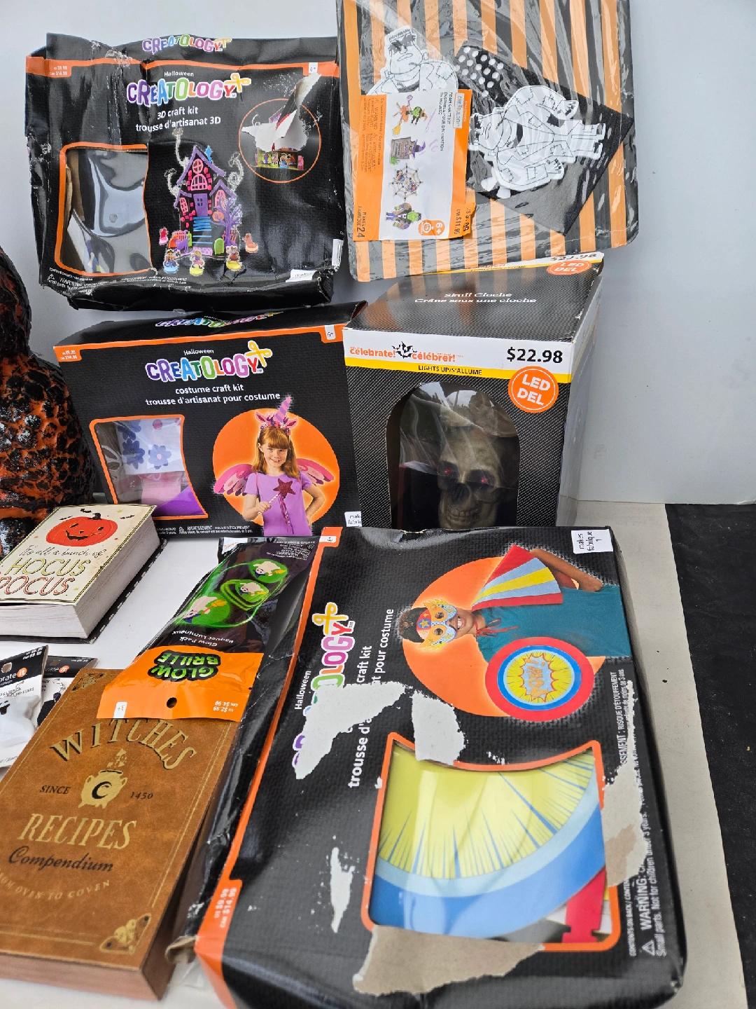 37Brand new halloween craft and decore lot. Cleaning out our holiday bins and we collected all these brsnd new halloween decoration and craft lot that we never used last year. Some craft boxes have been crushed due to being in a overstuffed box, but the contents are still intact. The skulls light up. Price is firm Pick up near 22nd skytrain new west