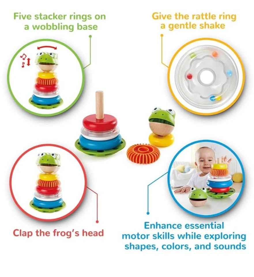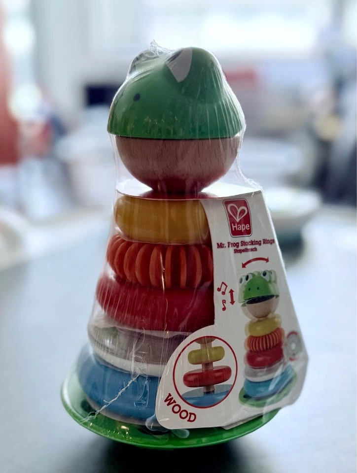 BRAND NEW UNOPENED Hape Mr. Frog Stacking Rings | Wooden Ring Stacker Play Set, Educational Toy. Pet free and smoke free home. Still in packaging. Cash only please. INCREDIBLE FUN TOY: Allow your child to build and disassemble the frog while learning colors and sounds STACKER ON A WOBBLER BASE: Sort and stack five colored rings in different ways, then bat at the wobbly base to see what happens. Multiple materials and textures stimulate children’s tactile senses FINE MOTOR SKILLS: This wooden frog set will develop key motor as they learn about shapes, colors and sounds while playing DURABLE: Made with high quality, sustainable materials which will last a life time CHILD SAFE: Non-toxic paints and finishes so you do not have to worry about anything but having fun