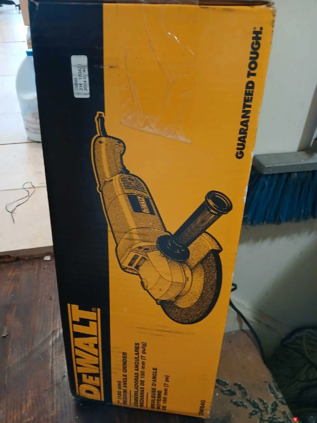 10Brand new sealed in original box from Dewalt. 7 inch heavy duty Dewalt grinder model number Dw840. Paid $300 for it a while ago and they sent me a new one under warranty and never used it. Willing to sacrifice it for $150 cash or best offer. Great for heavy duty use like grinding welds, polishing or autobody work. Text John at 416-771-6218.