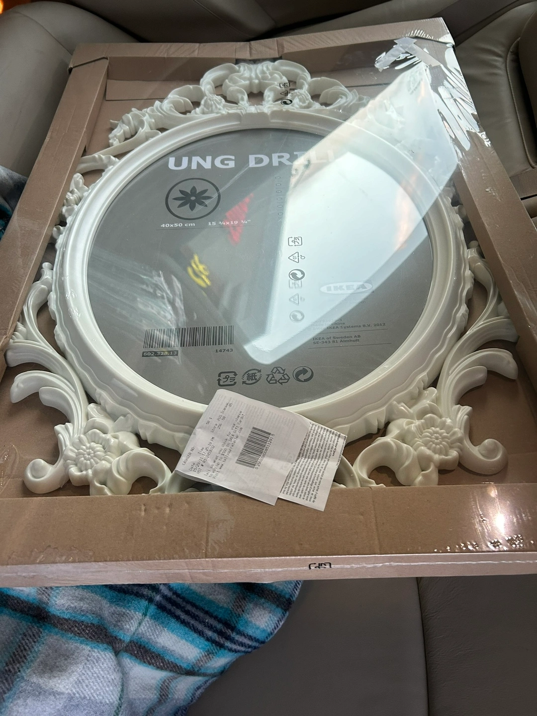 1000+White oval resin frame with an ornate, floral-inspired frame. From ikea Never used still in original sealed package A short 3-4 minute walk east of Dundas West subway - to 1421 Bloor st West, meet in or out front of Martin’s coffee shop at 1421 Bloor st west by appt