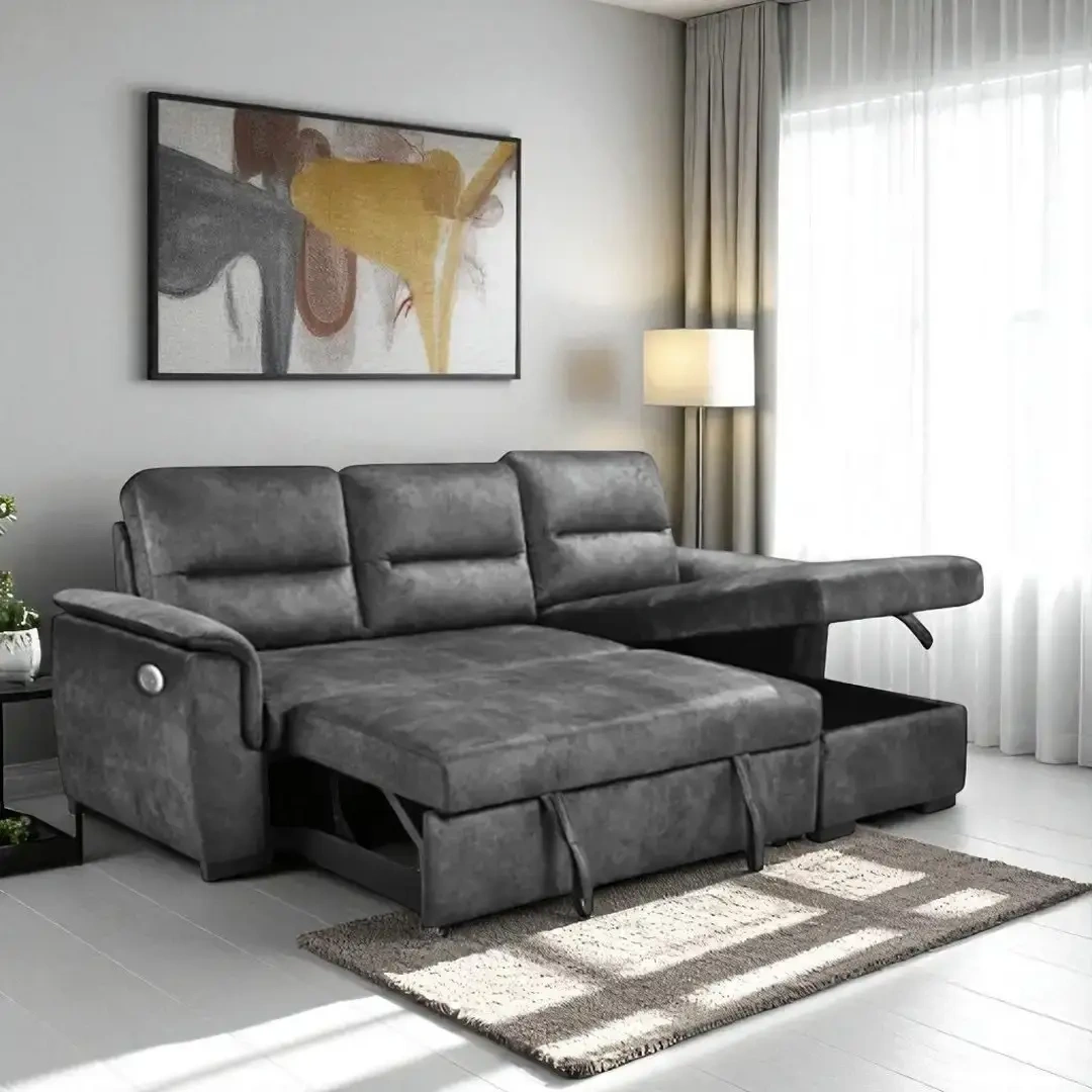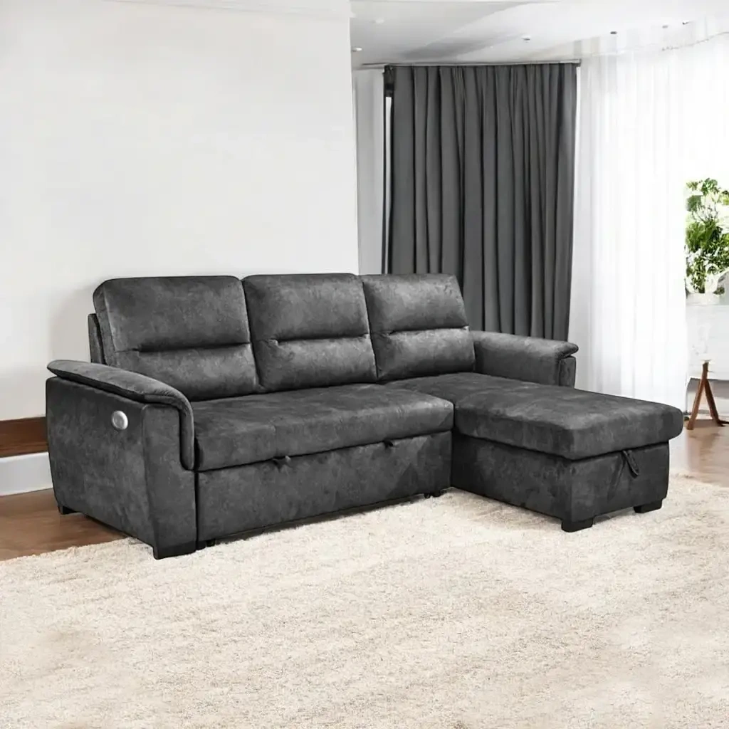 20We sell futons, sleeper couches, SECTIONAL SLEEPER, Pullout Bed, Sleeper couches, pullout beds, sofabed, dining tables, kitchen tables, dinette sets, bedroom sets, single beds, sectional beds, bunkbed, recliner sets, leather sofas, table lamp, sleeper sofa, twin bed mattresses, roll mattresses, memory foam mattresses, queen bed frame, metal bed frames, accent chairs, coffee tables, end tables, night tables, console table, sofa tables dining chairs, wooden tables, king bed frame kids bed children’s furniture, floor lamp, wall art, paintings, rugs, etc… Sarina Sectional Sofa Bed With Reversible Chaise - Grey Contemporary Style Sturdy Construction Soft Fabric Upholstery Comfortable Seating Storage Chaise Quality Craftsmanship Dimensions (L x W x H): 95" x 60" x 39" (Approximately) Sale Price $ 899 Cod Available Order From Our WEBSITE and Get It Delivered to Your Home www.cosmichomescanada.com **WhatsApp: 226-883-3111** $$DELIVERY AVAILABLE AT ADDITIONAL COST $$ ****CASH ON DELIVERY IS ALSO AVAILABLE PLEASE CONTACT****