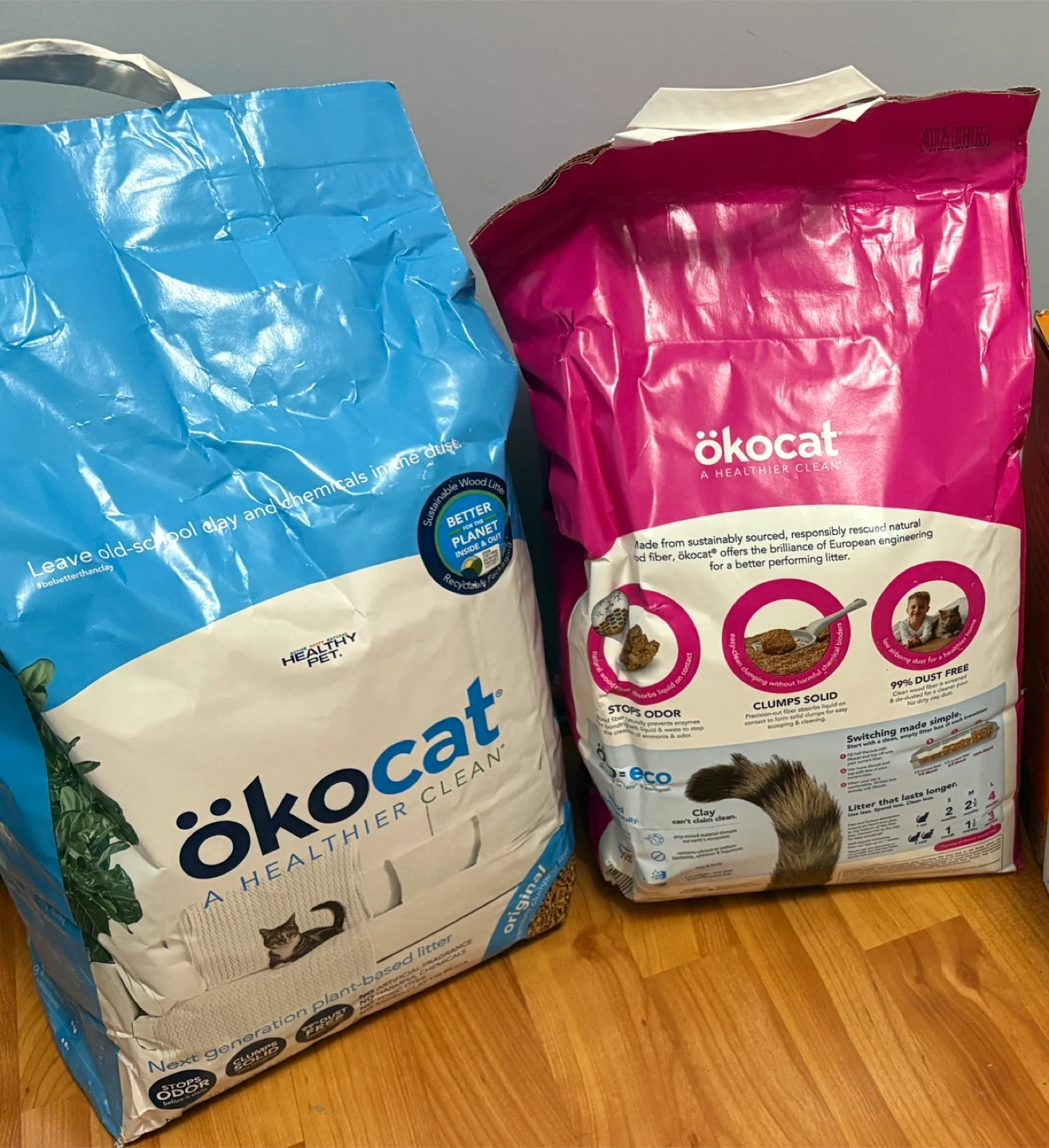Selling brand new Ökocat clumping wood cat litter. It's low dust and natural. 2 bags for 30