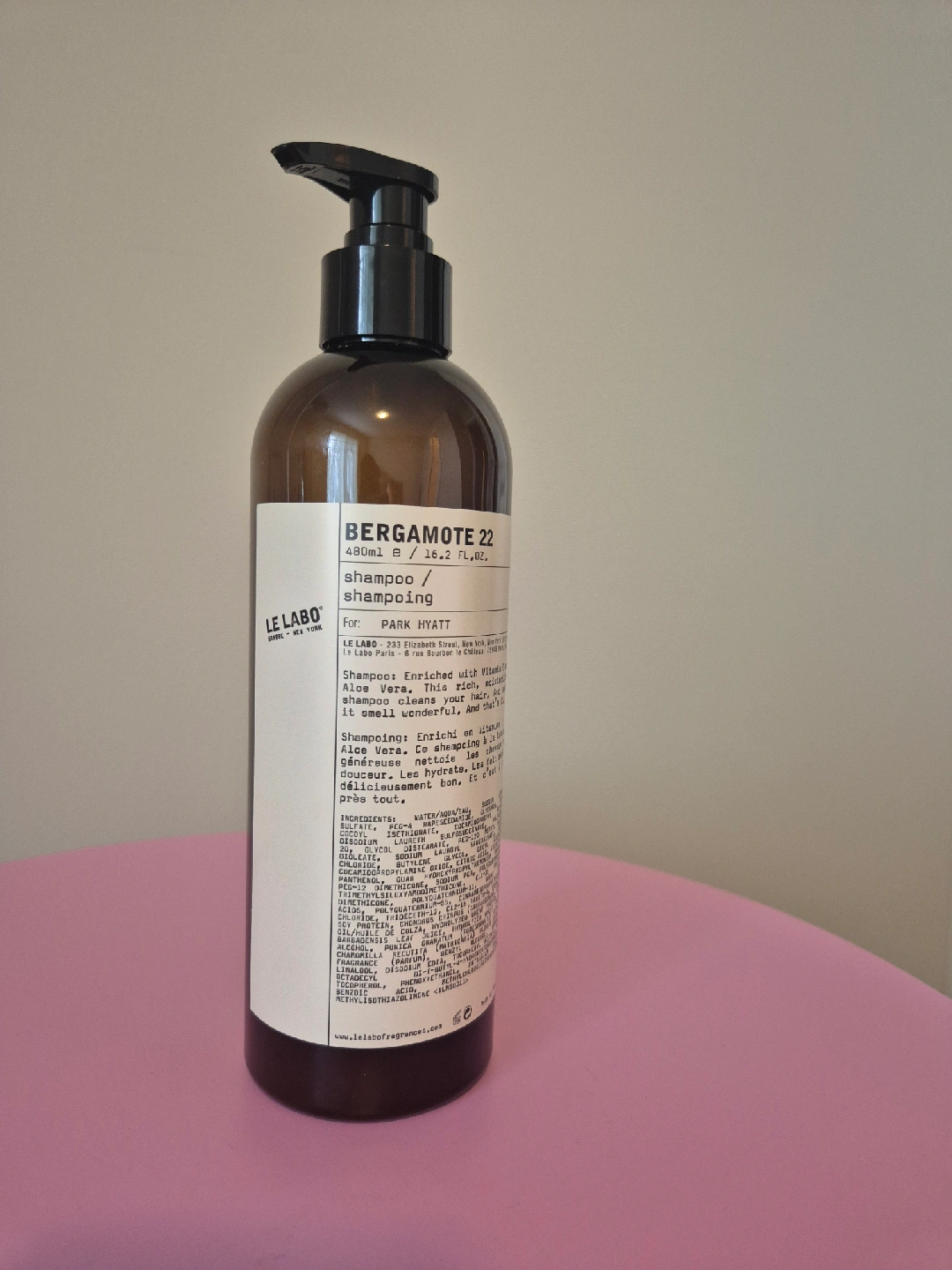Selling a bottle of Le Labo Bergamote 22 shampoo, specially formulated for Park Hyatt. It comes in a 480ml (16.2 fl.oz) bottle. This shampoo is enriched with Vitamin E and Aloe Vera, leaving your hair clean and smelling wonderful.