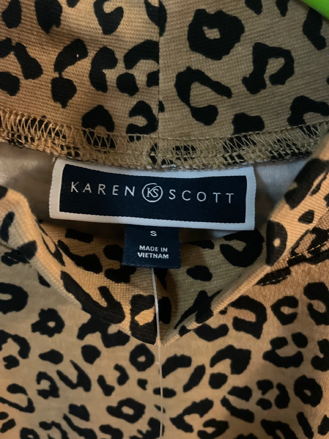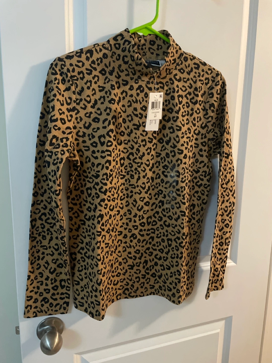 Long sleeve top with a mock neck, brown and black leopard print, size small. Could fit medium size too. Brand new with tags. Smoke free and pet free home.