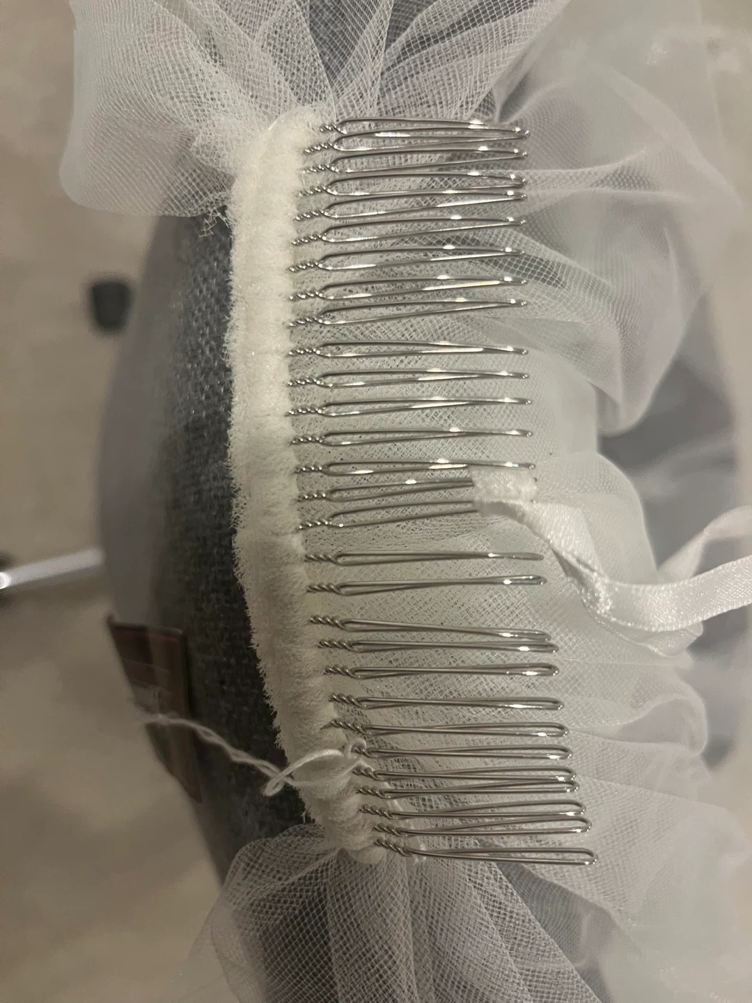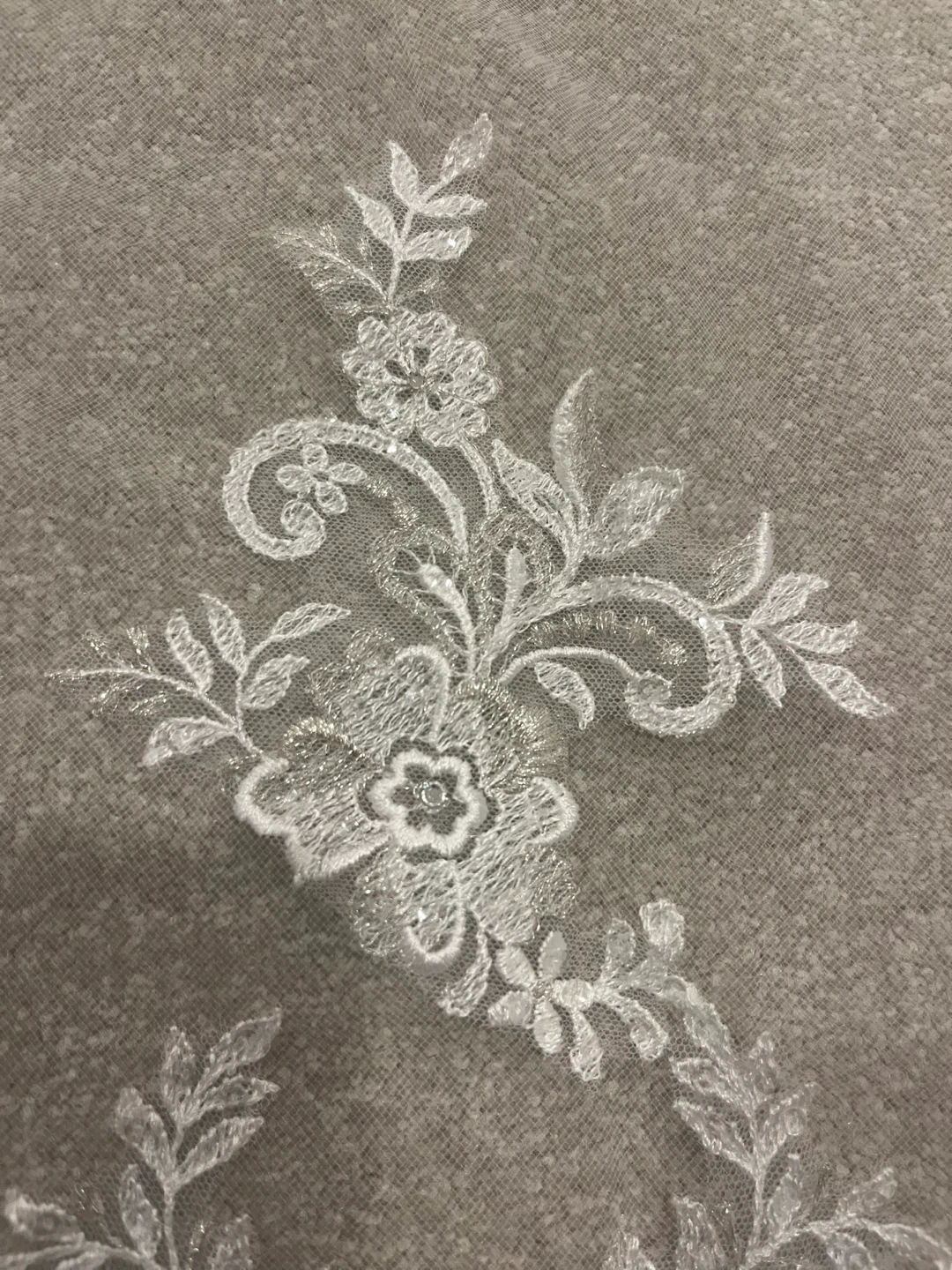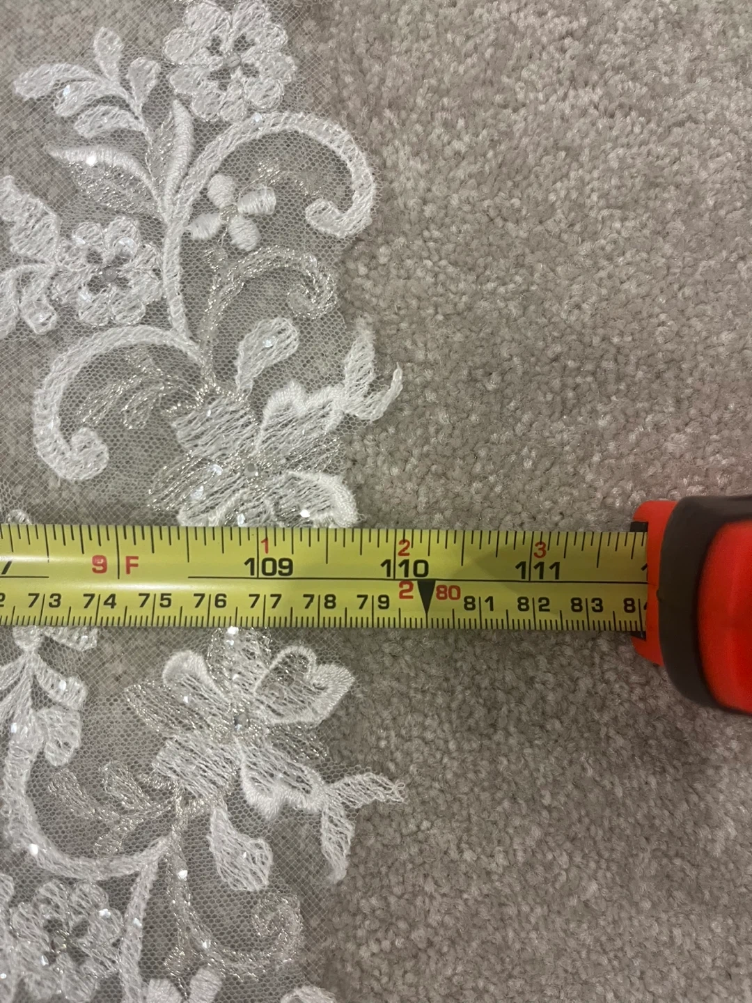 60Brand new, never worn Beautiful very long wedding veil with delicate floral lace trim. The lace detailing is really lovely and adds a touch of elegance. Approximately 2.79m