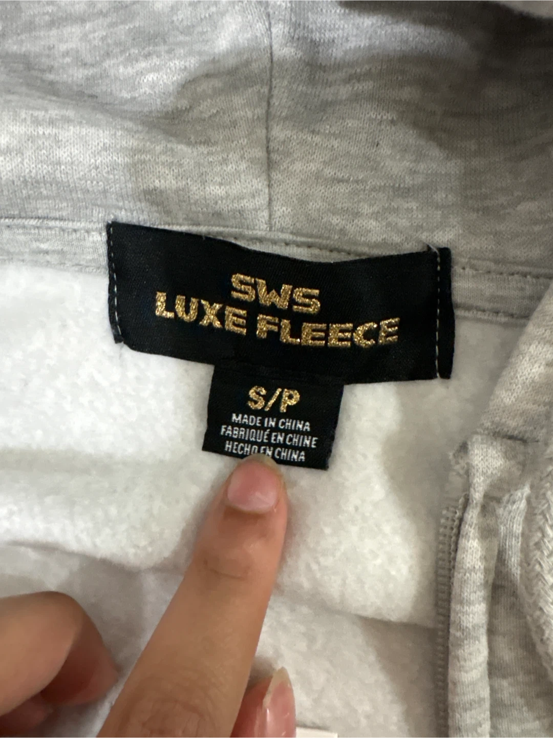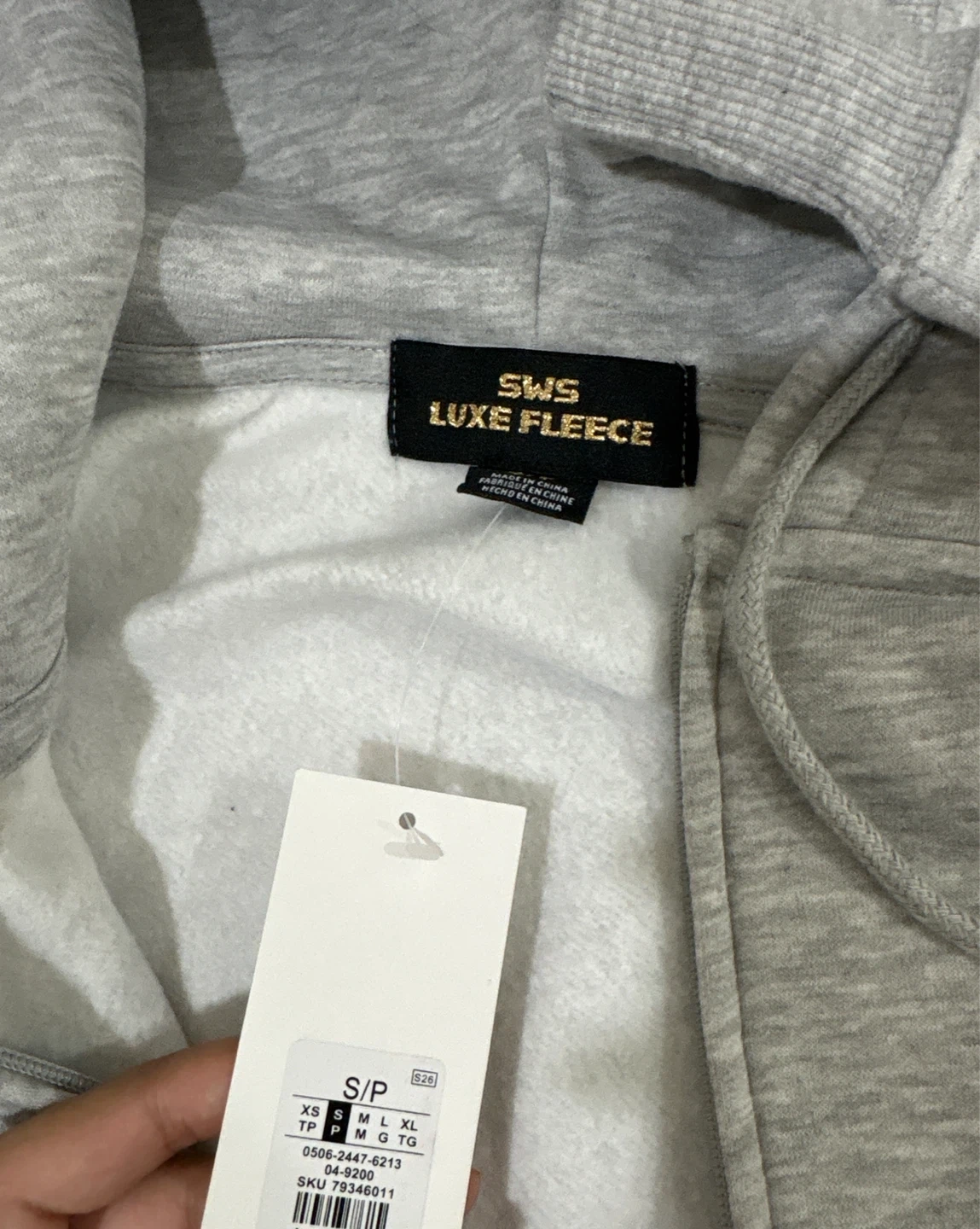 0Selling a gently used SWS Luxe Fleece zip-up hoodie in a light grey colour. It's a size small (S/P) and in great condition. Perfect for layering or just lounging around! BRAND NEW NOT WORN ONCE
