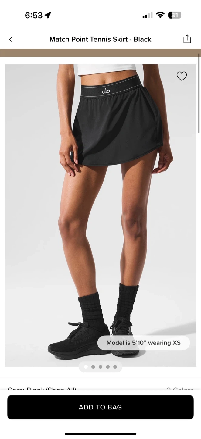 Brand New with original plastic bag Selling an ALO Match Point Tennis Skirt in Black! The model in the picture is 5'10" and wearing a size M, so you can get a good idea of the fit. It's in great condition and ready for a new home