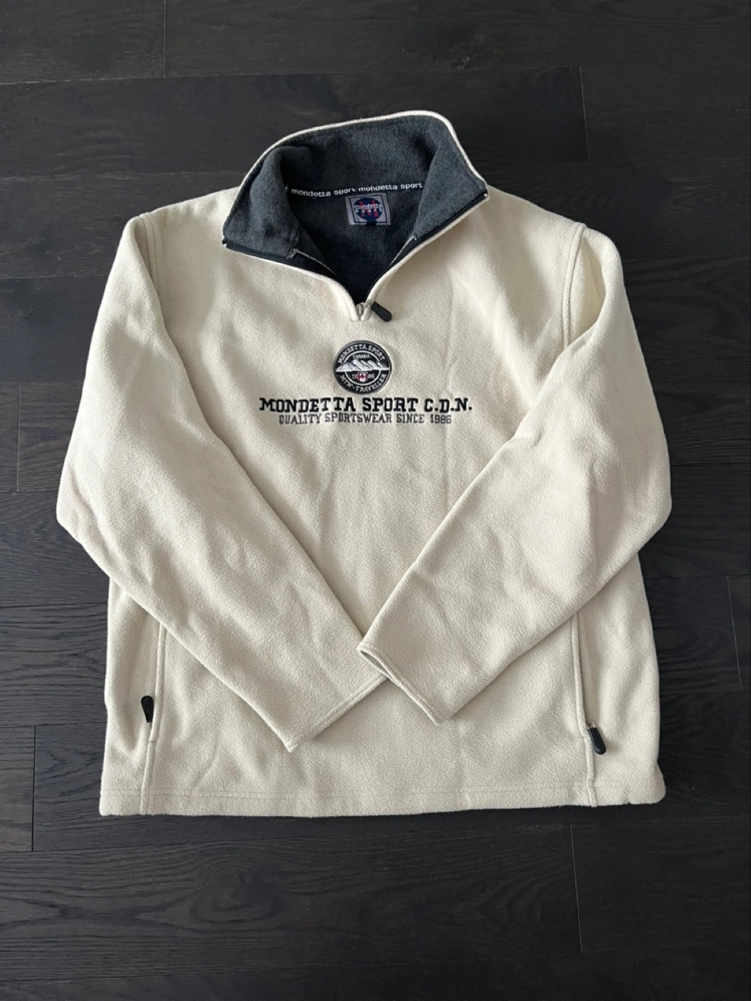 61Brand new cream-colored fleece pullover. 1/4 zip. Size medium.