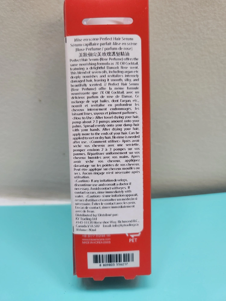 Brand new item!! (Expiration date: until 2027) I've been using this brand hair serum for a few years and loving this. If you're new to experiencing Korean hair serum, you can try this one (friendly price, not brand commissioned π) - light weight formula, soft rose-amber fragrance, won't weight your hair down. TMI: I usually apply the serum on damp hair β it makes my hair feel super soft, and the lovely scent lingers for about 3 hours.