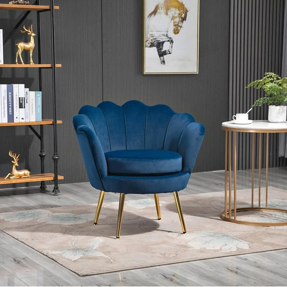 Modern Accent Chair – BU24773 ✨ 🪑 Features: • Elegant Design: Lotus-shaped backrest with golden metal legs for a touch of vintage glam. • Comfort First: Thick sponge-padded back, arms, and seat for full relaxation. • Soft Upholstery: Smooth velvet-touch polyester fabric with decorative stitching. • Versatile Use: Perfect for living rooms, dining rooms, bedrooms, or home offices. • Sturdy Build: Adjustable feet for stability, supports up to 330 lbs. 📏 Dimensions: • Overall: 29.9”W x 26.4”D x 29.1”H (76 x 67 x 74 cm) • Seat: 21.1”W x 19.7”D x 18.1”H (53.5 x 50 x 46 cm) • Weight Capacity: 330 lbs (150 kg) • Item Weight: 19.8 lbs 📦 Condition: Brand New (Unused; Factory Sealed) 💰 MSRP: $271..Selling for less than retail! 📍 Pickup: Hurontario & Sandalwood, Brampton