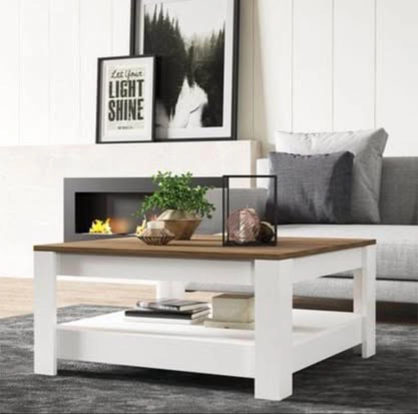 Selling a coffee table with a lower shelf! Elegant durable stable coffee table with a modern design allowing an ambience to be harmoniously created, easily blends with your home decoration. Made of high quality MDF and sturdy wood. This heavy-duty durable coffee table is suitable for a variety of places like kitchen, restaurant, cafe, Living room, beside sofa or window and others. ►Specifications ►Condition: Brand New in a box. ►Material: Quality MDF. ► Easy to clean ►Assembly: Very easy, it comes with an assembly instructions manual. ► Color: model dependent - Dark oak top/ white frame - marble white - all dark oak for dimension please contact me