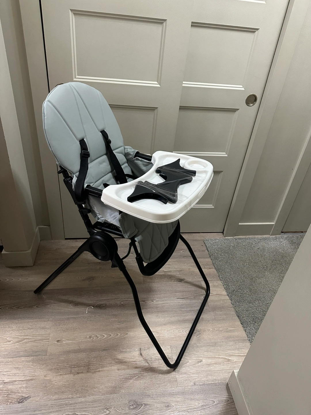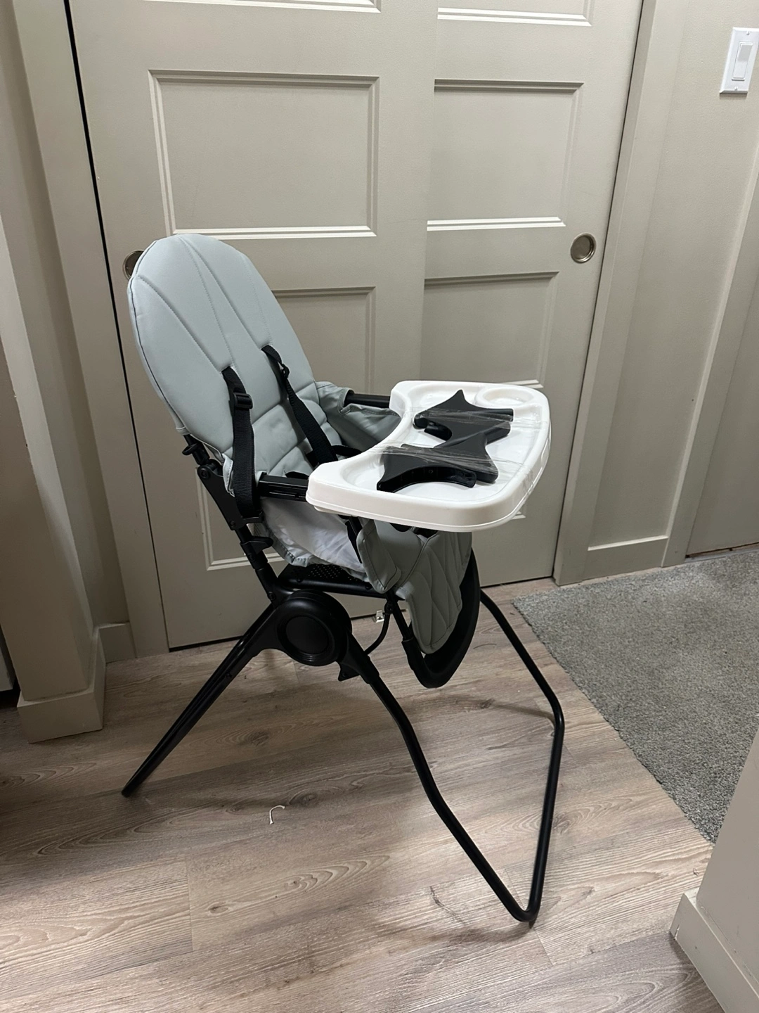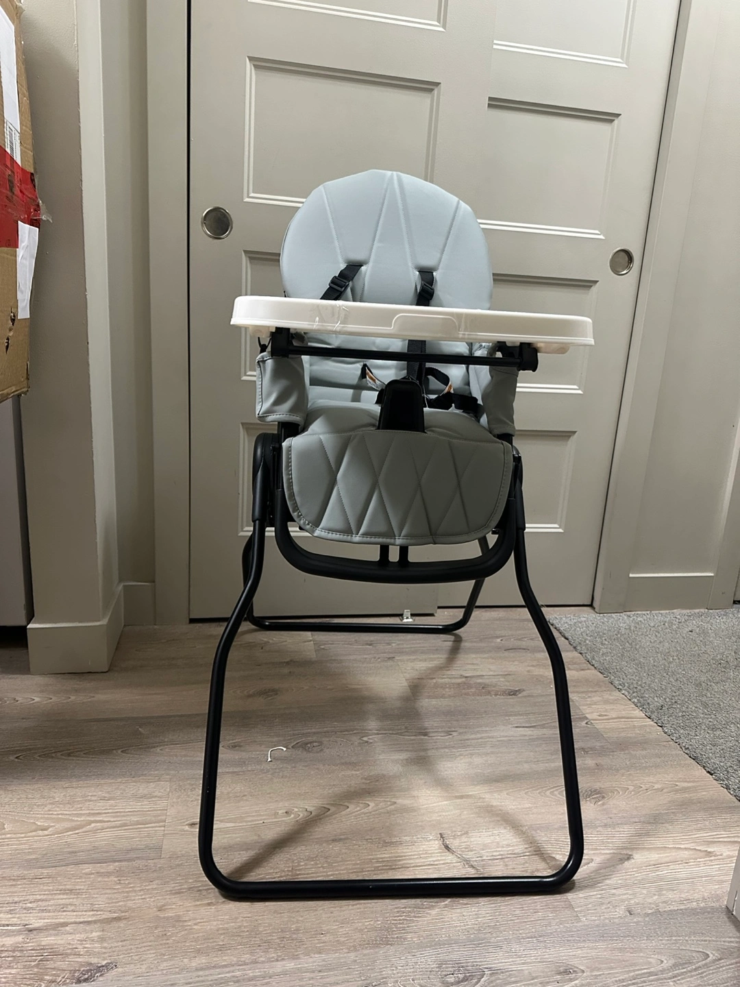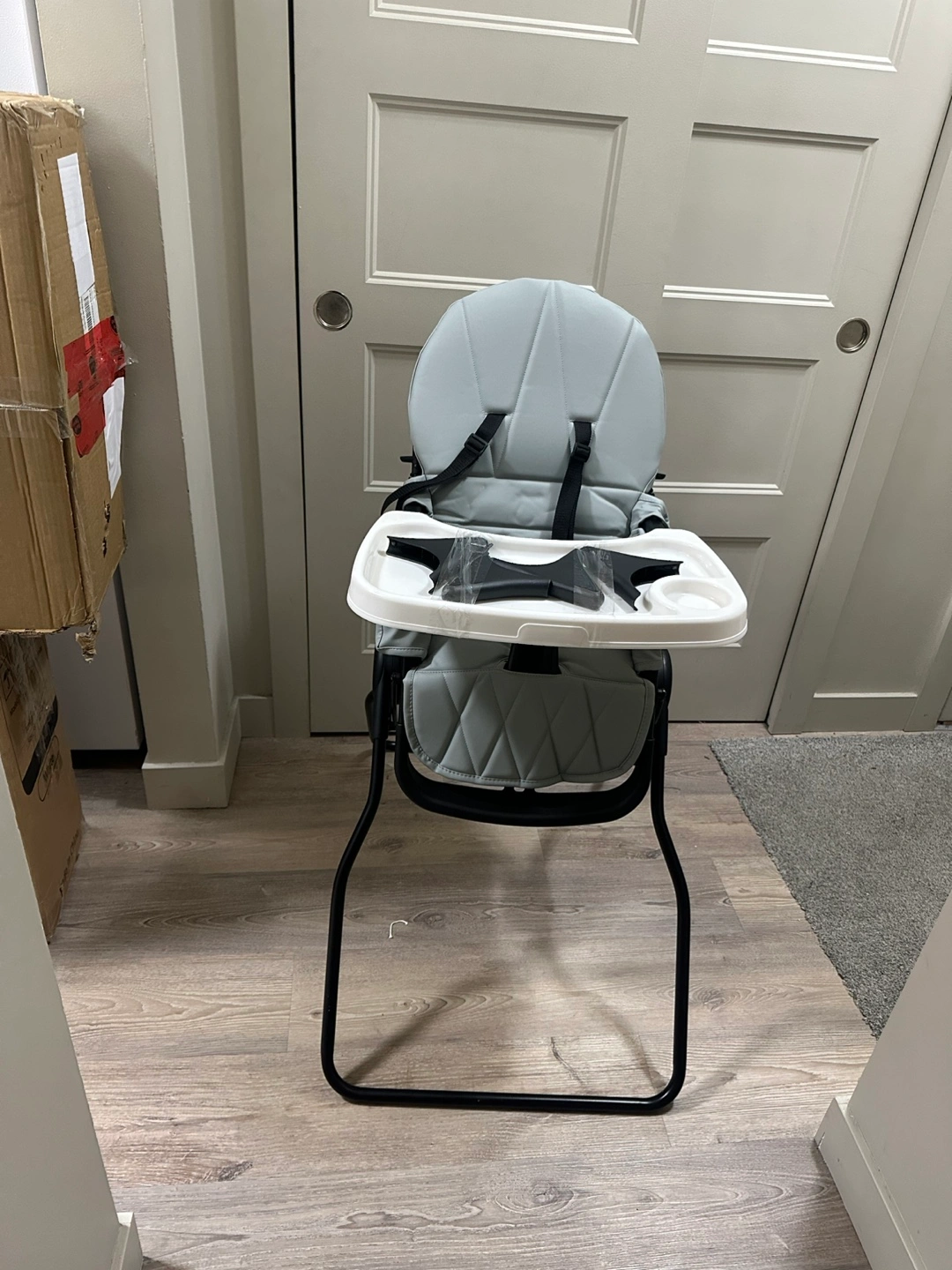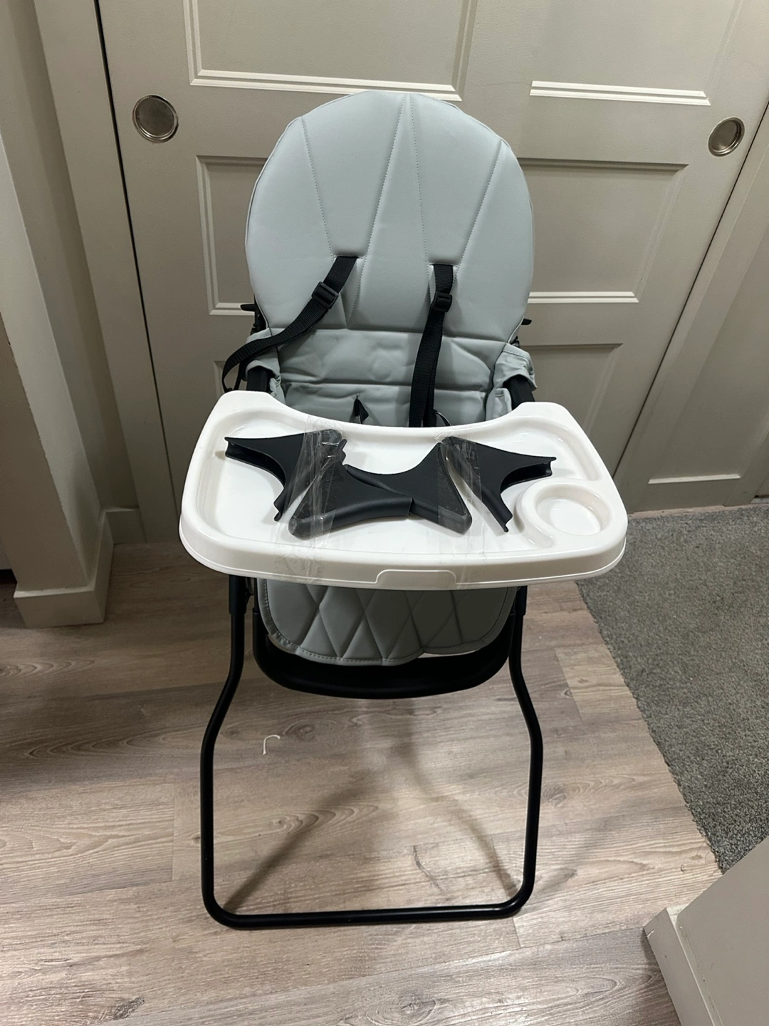 97Brand new baby high chair designed for hassle-free feeding time. This foldable high chair features an adjustable tray and footrest, ensuring that it grows with your little one. It comes with a removable, easy-to-clean PU seat cushion, a secure 5-point harness for added safety, and a handy cup holder. Perfect for both babies and toddlers. This high chair is available for pickup in Red Deer, with the option for delivery at an additional fee.