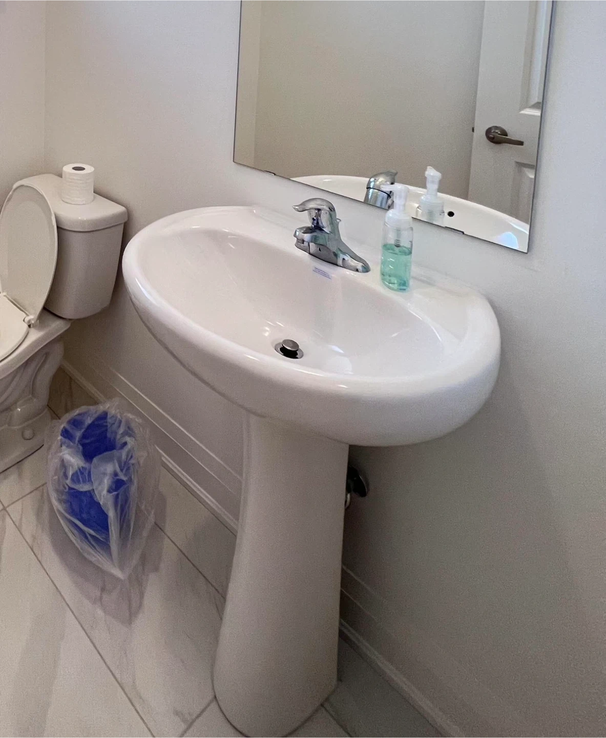 Selling a pedestal sink, perfect for a powder room renovation. Moen faucet included. Brand new condition.