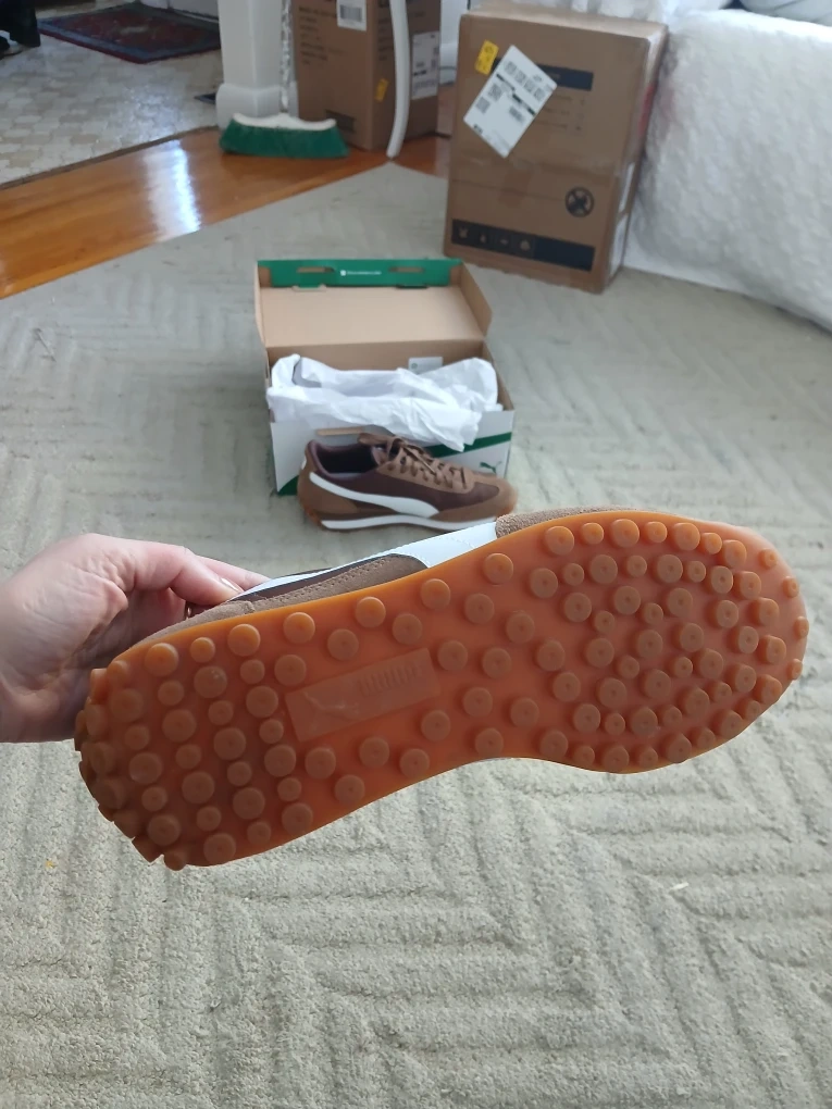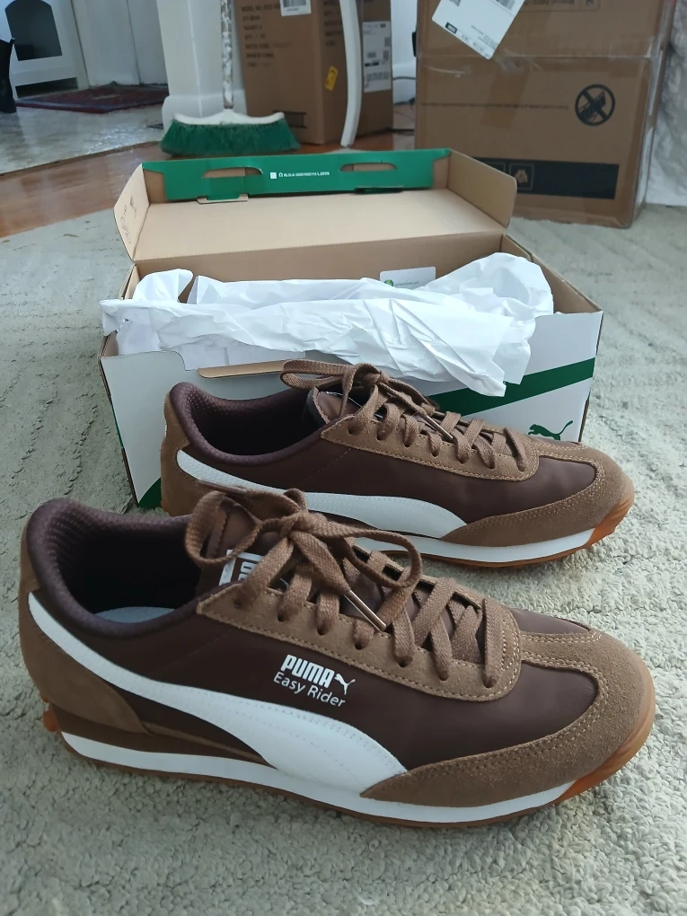 28Selling a pair of Puma Easy Rider S&N Wns sneakers in a lovely coffee brown colour! They are a women's size 10. These have a classic, sporty look that's super versatile. They come with the original box. Originally bought for $110 CAD.