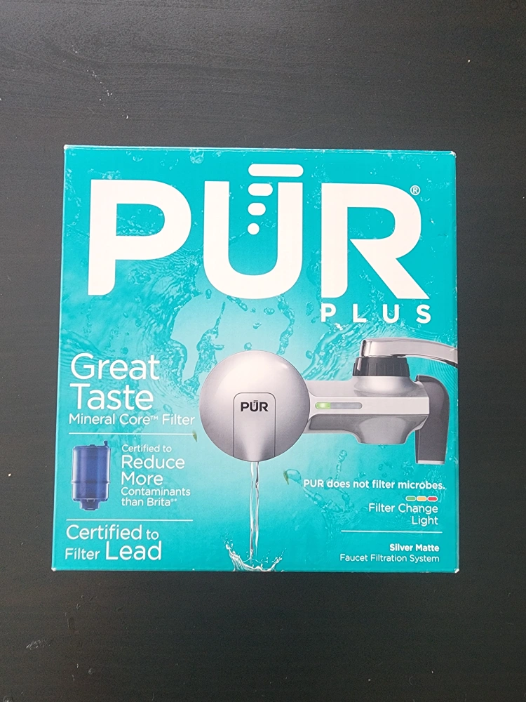 Get cleaner, great-tasting water straight from your tap with this PUR Plus faucet filtration system! It reduces 70 contaminants and substances, including lead. The filter is certified to reduce more contaminants than Brita. It's easy to attach with no tools. The colour is silver matte.