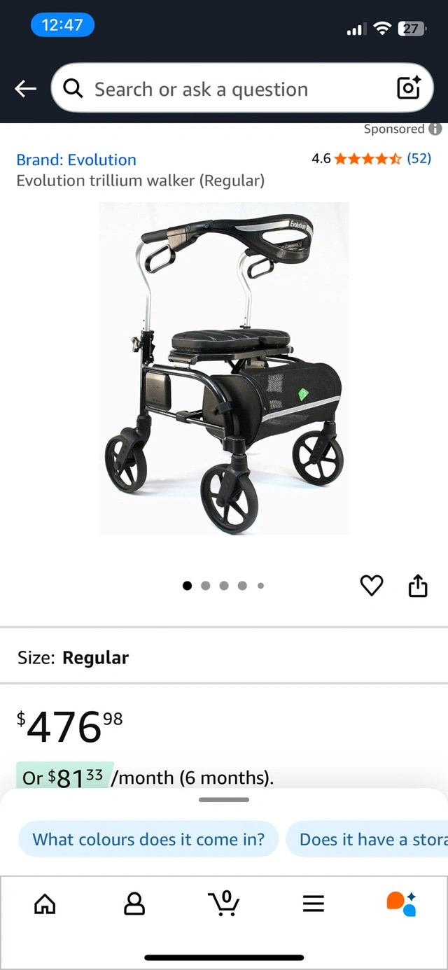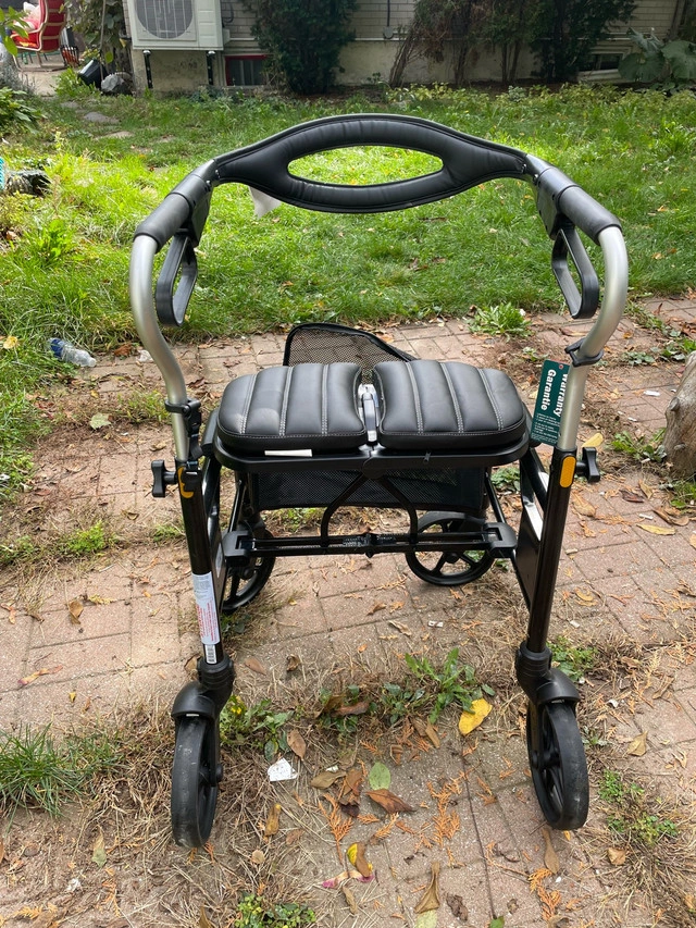 Selling a brand new rollator walker with padded seat, curved backrest, hand brakes, and mesh storage. Sleek black and silver design, four-wheel stability, and smooth mobility—perfect for indoor and outdoor use. Price: $325 or best offer. Amazon sells this for $476 + tax – save over $150! Pickup in Brampton – Ambleside Drive, L6Y 1B7. Unused and in mint condition. Moving soon – everything must go! More items available – check my other ads!
