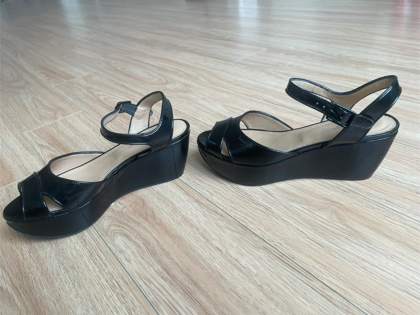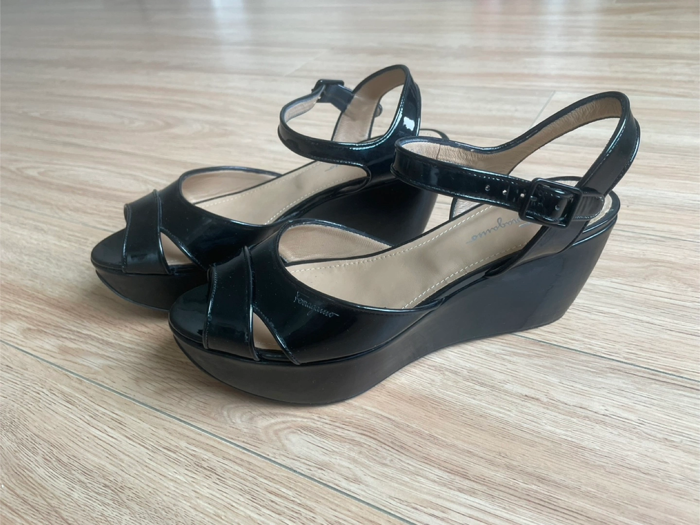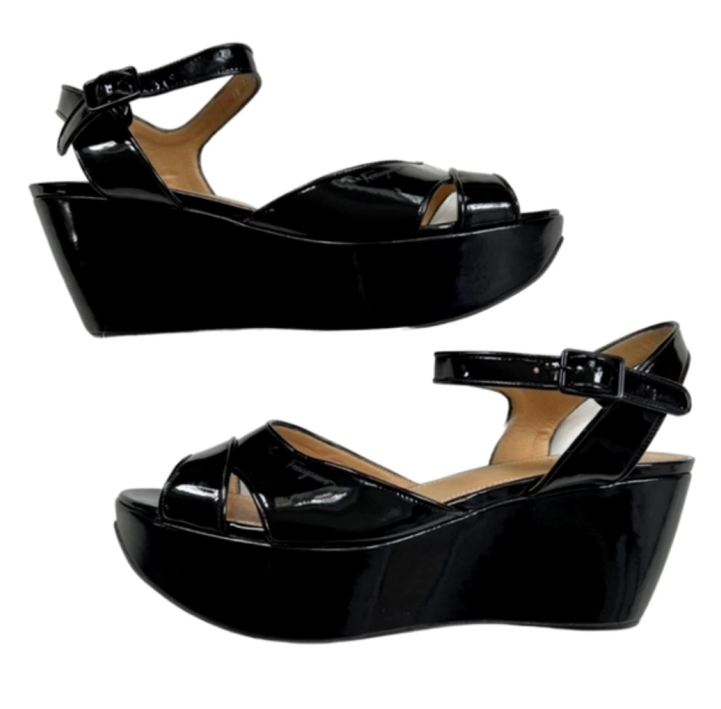 247Brand new black patent leather wedge sandals Only tried on once, never worn outside. Comes with original box. Retail price was $450 + taxes