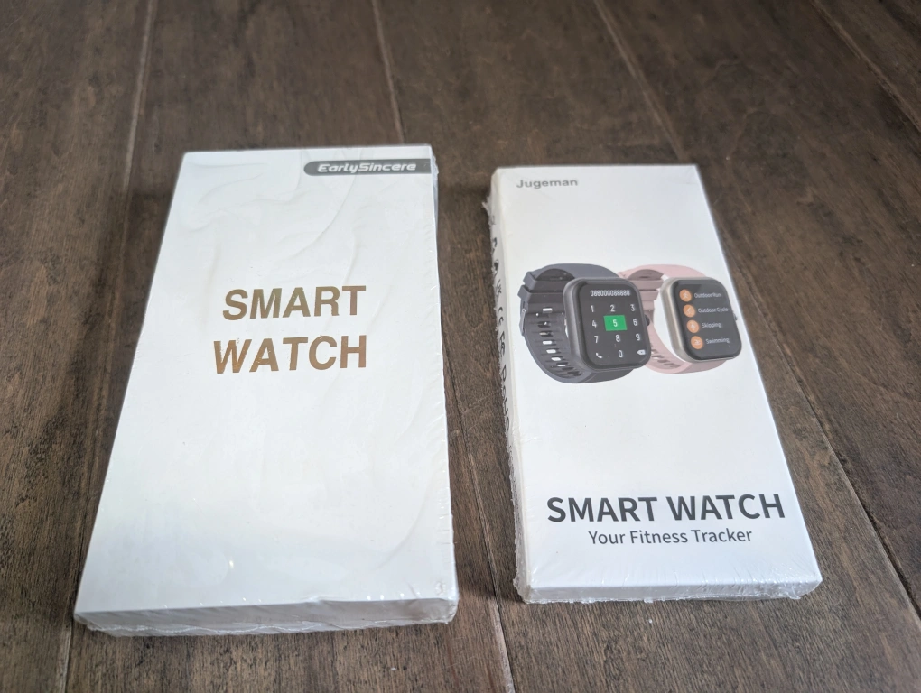 Brand new, sealed smartwatch, fitness watch for sale. Sport models, heart rate, sleep, blood and oxygen monitor, waterproof, touchscreen, iOS and Android compatible, text and call display, pink and gold colors. $35 each FIRM.