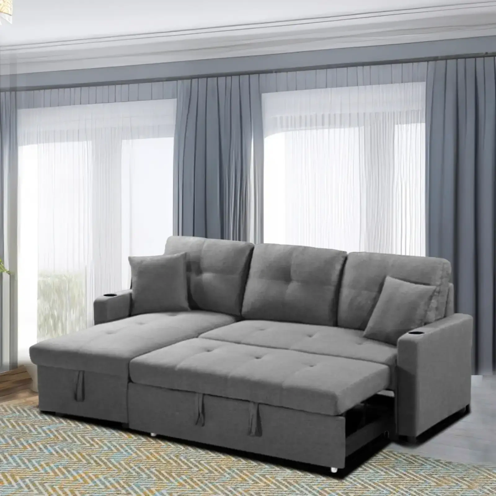 20We sell futons, sleeper couches, SECTIONAL SLEEPER, Pullout Bed, Sleeper couches, pullout beds, sofabed, dining tables, kitchen tables, dinette sets, bedroom sets, single beds, sectional beds, bunkbed, recliner sets, leather sofas, table lamp, sleeper sofa, twin bed mattresses, roll mattresses, memory foam mattresses, queen bed frame, metal bed frames, accent chairs, coffee tables, end tables, night tables, console table, sofa tables dining chairs, wooden tables, king bed frame kids bed children’s furniture, floor lamp, wall art, paintings, rugs, etc…… Philip Sectional Sofa Bed With Reversible Storage Chaise & Cup Holders - Grey Contemporary Design Sturdy Construction Fabric Upholstery Comfortable Seating Storage Chaise Quality Craftsmanship Dimensions (W x H x D): 88.5" x 37.25" x 59" Sale Price: $799 Cod Available Order From Our WEBSITE and Get It Delivered to Your Home www.cosmichomescanada.com *****WhatsApp: 226-883-3111***** $$DELIVERY AVAILABLE AT ADDITIONAL COST $$ *********CASH ON DELIVERY IS ALSO AVAILABLE PLEASE CONTACT*********